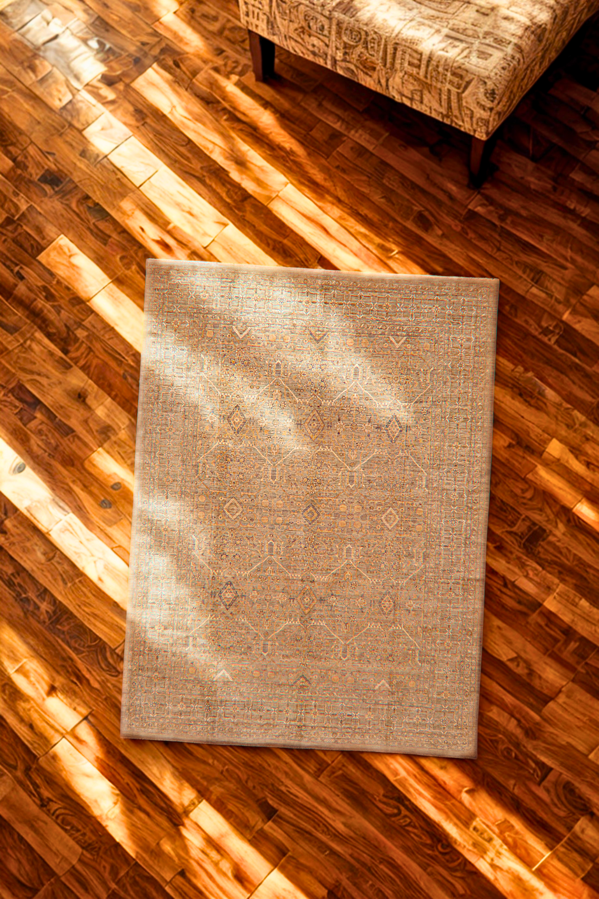 What sets this piece apart is its near-tonal palette — a study in misty blue, pale beige, and soft mineral tones that together form a neutral foundation with a fresh, airy aesthetic. Perfect for coastal, transitional, or modern organic spaces, this rug brings a refined calm to open-plan rooms or curated sitting areas.