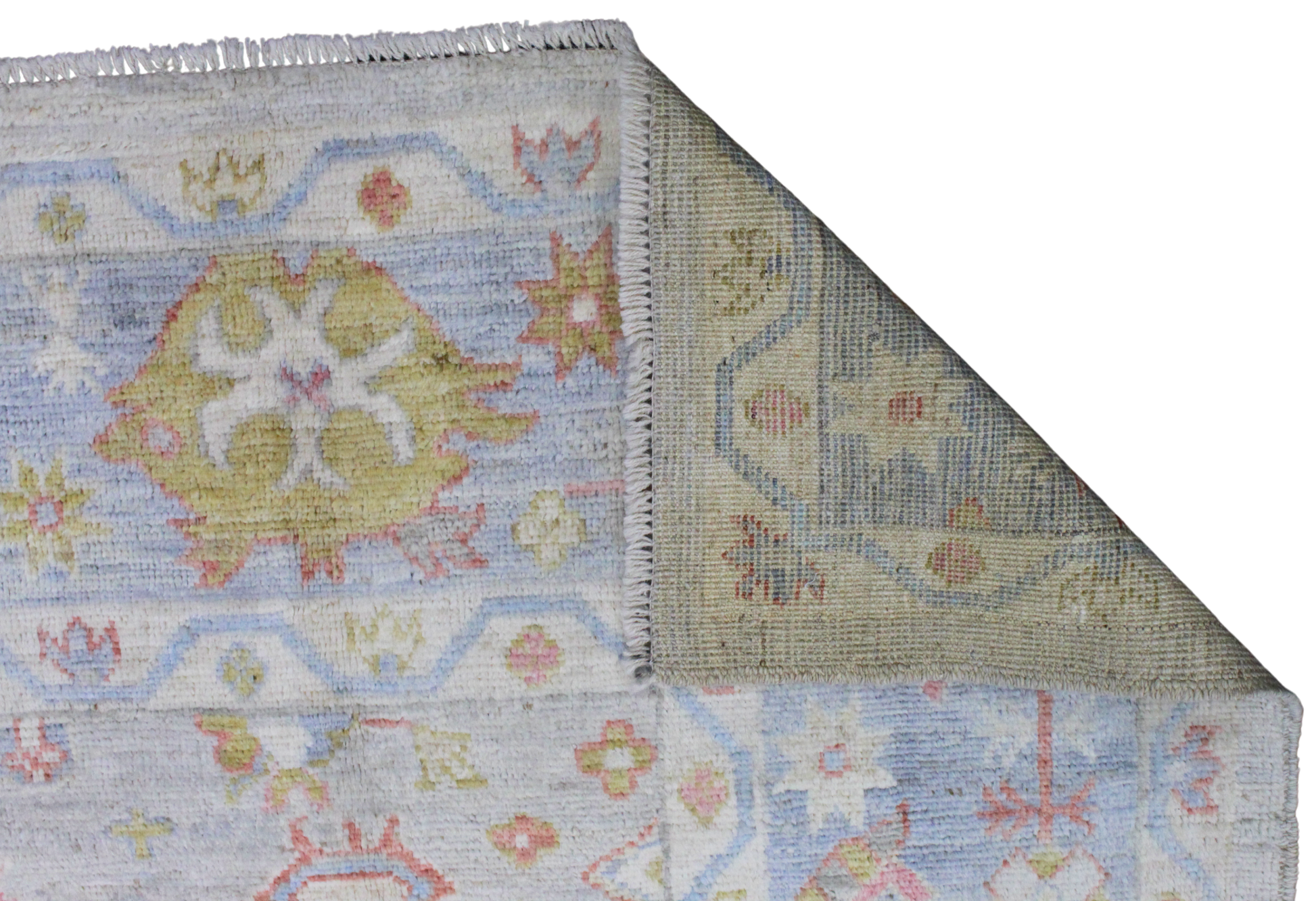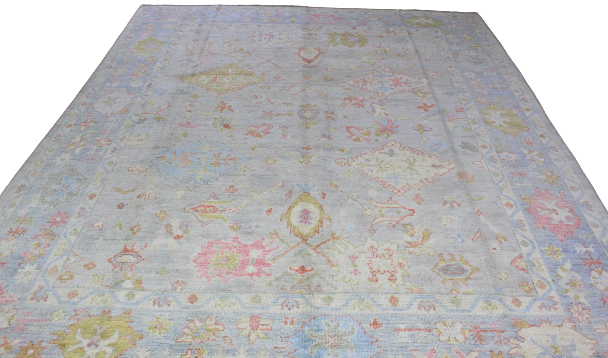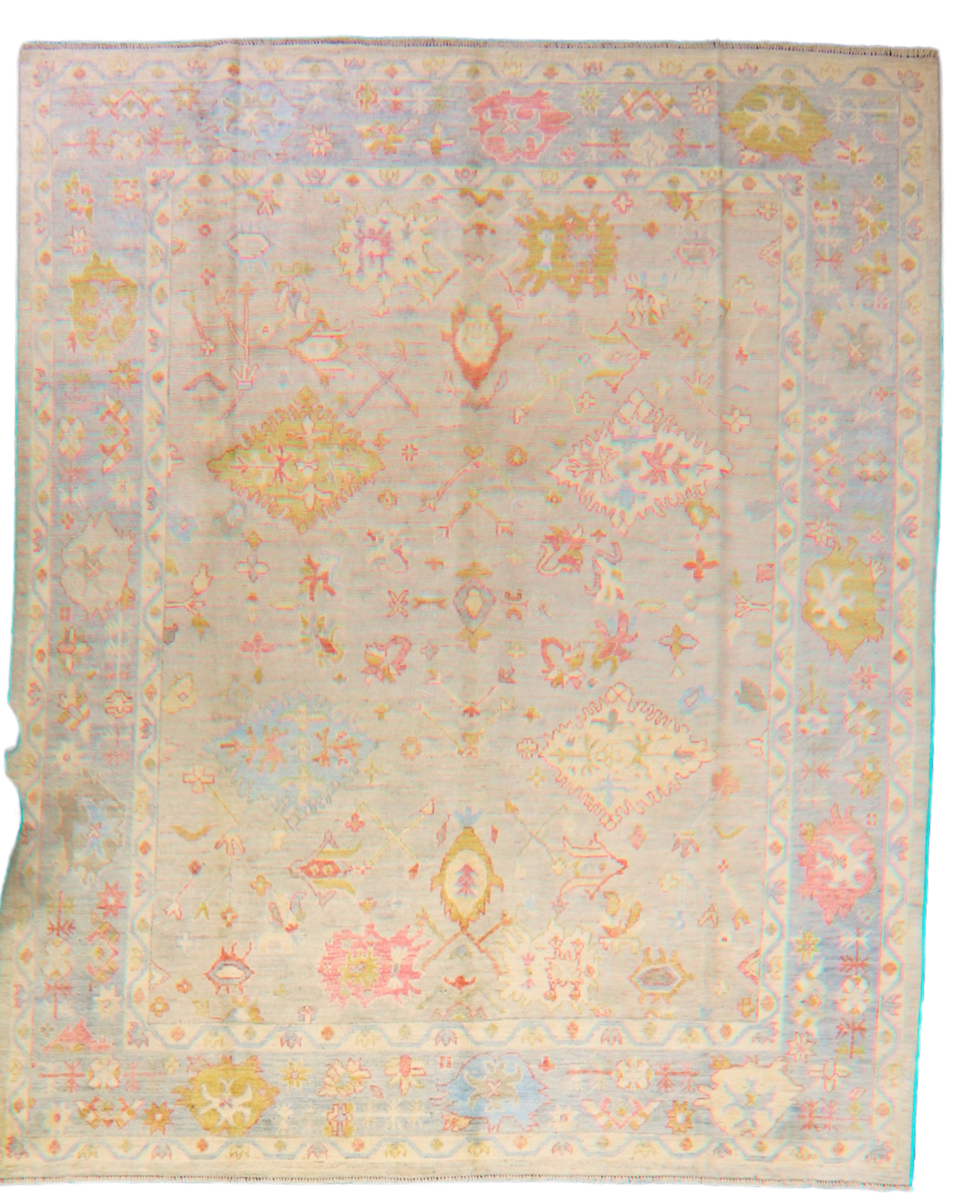 Soft as morning light and rich in artistic tradition, this 7.11 × 9.9 ft Oushak rug from Afghanistan glows with quiet sophistication. Its pastel field gently carries classic Oushak motifs — stylized medallions, lotus blossoms, and botanical flourishes — all arranged with graceful balance and generous spacing.