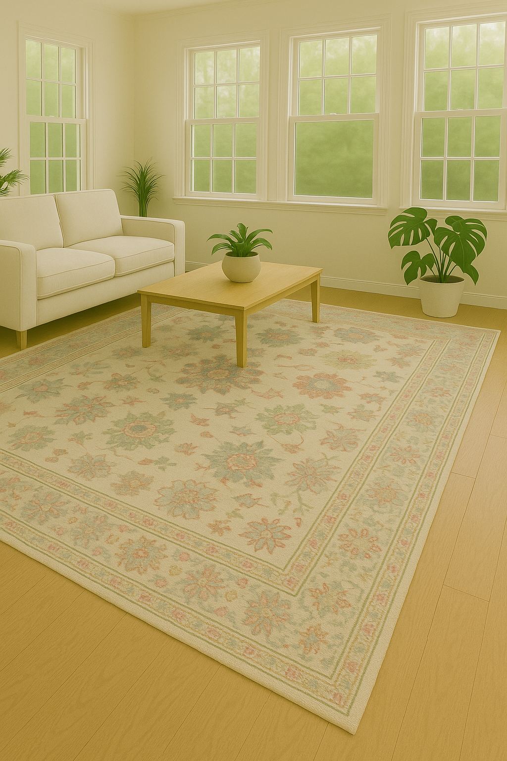 A graceful blend of tradition, craftsmanship, and timeless appeal—this Oushak rug will elevate the atmosphere of any room with its quiet grandeur.