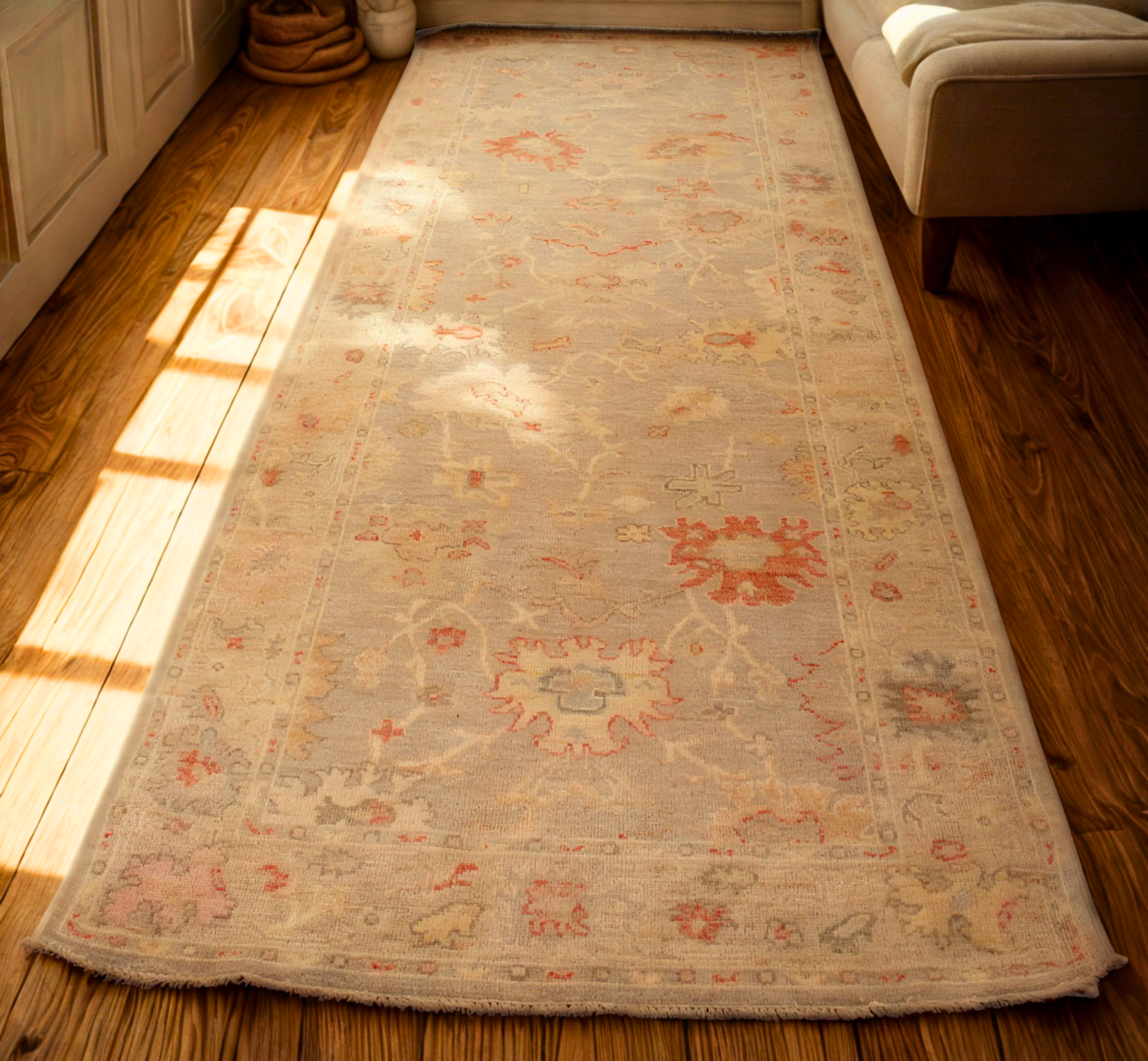 Sun-Faded Poetry – Long Oushak Runner from Afghanistan (11.7x4.2 ft)