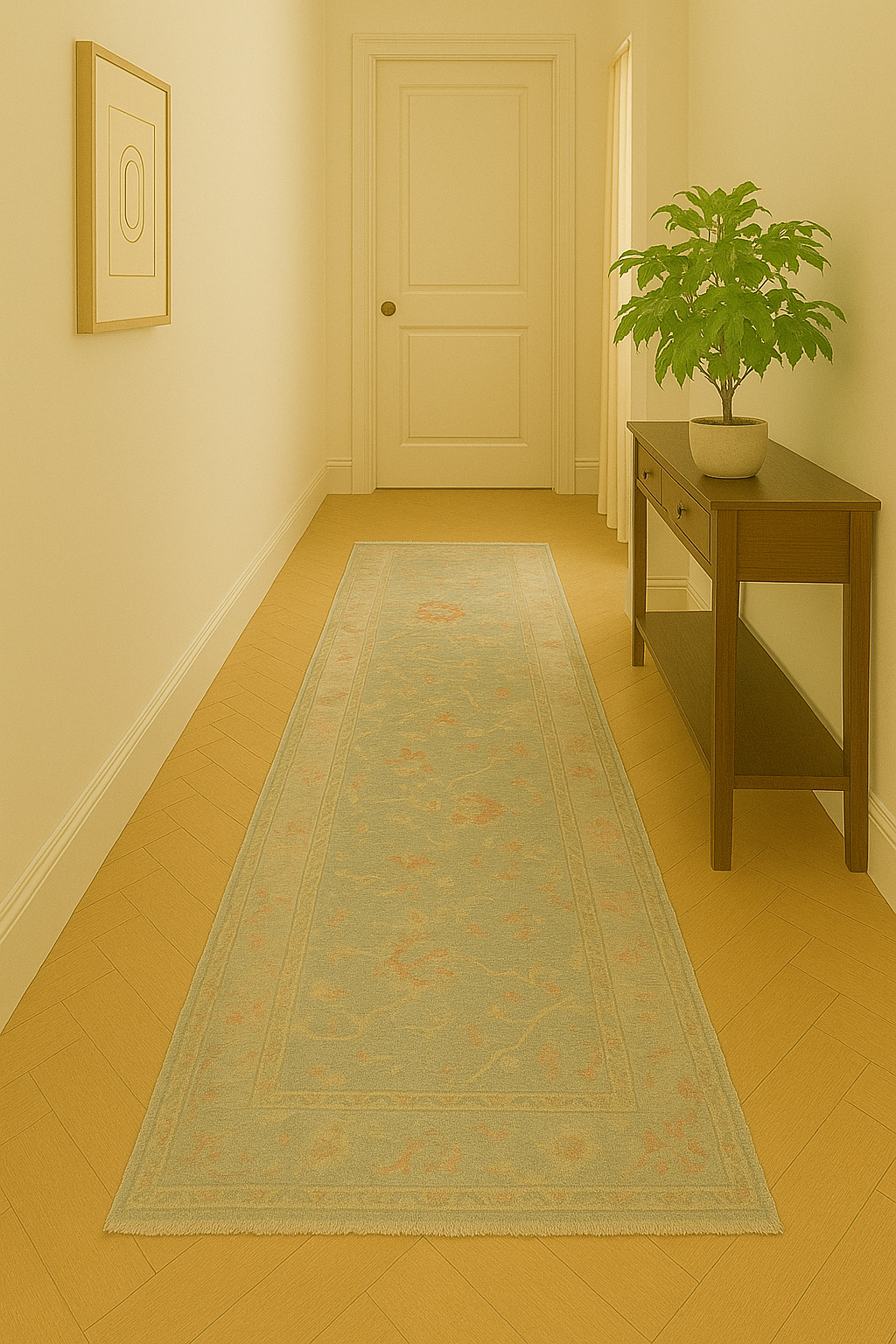 Perfect for long corridors, gallery halls, or as a welcoming passage runner in open-plan spaces, this rug pairs timeless craft with subtle charm.