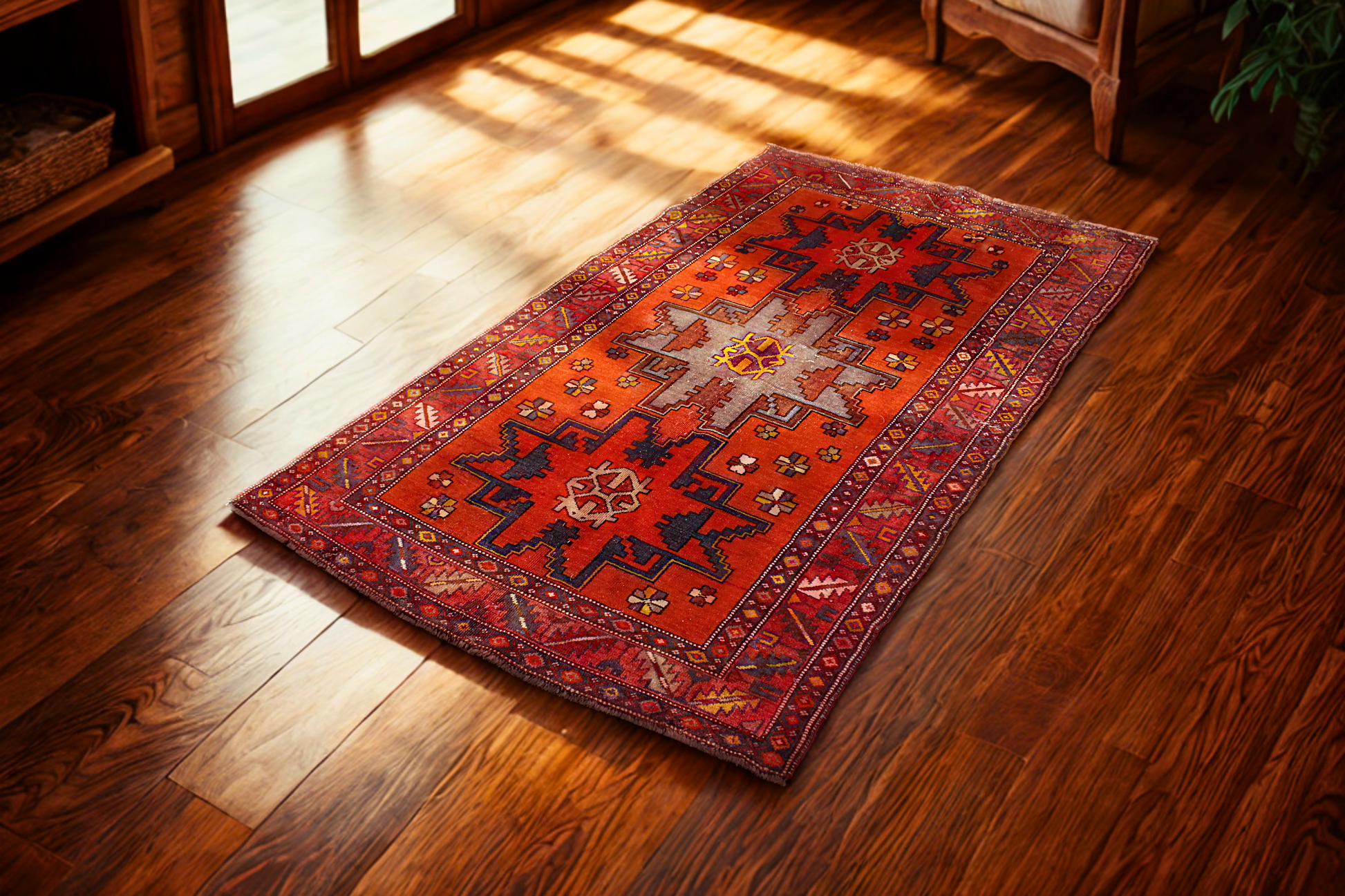 Fiery Geometrics — Antique Russian Rug (3.8′ × 6.1′)
