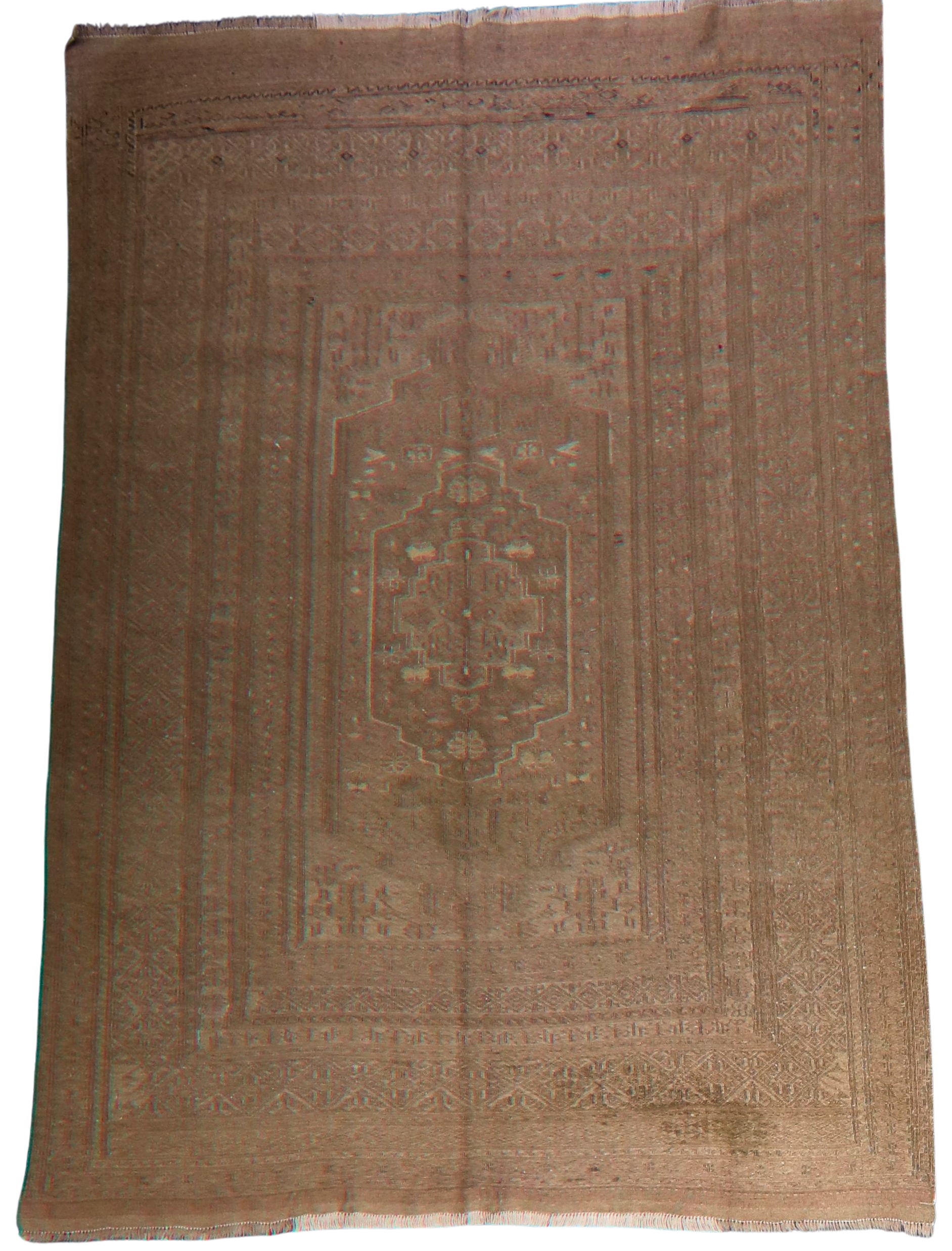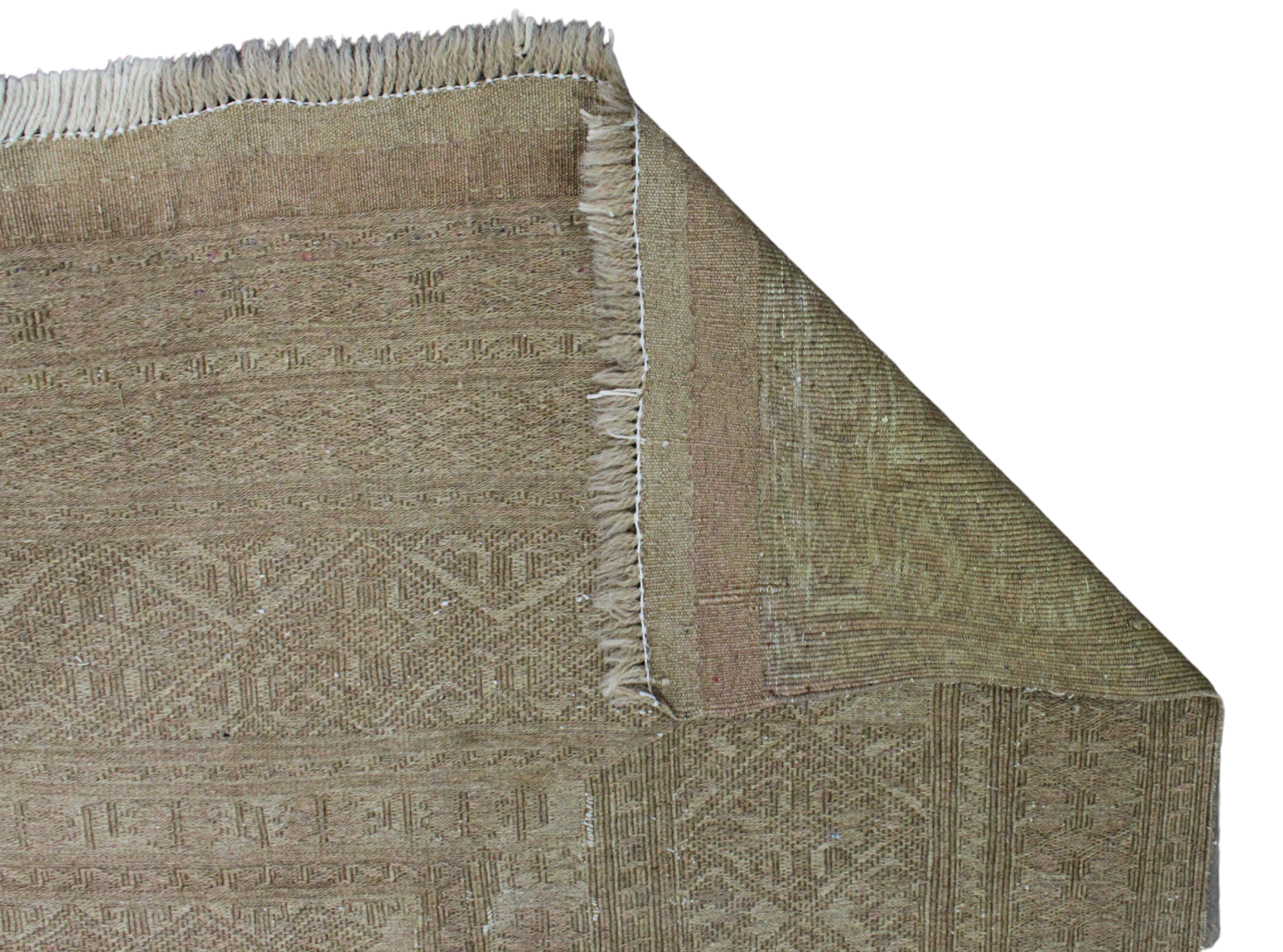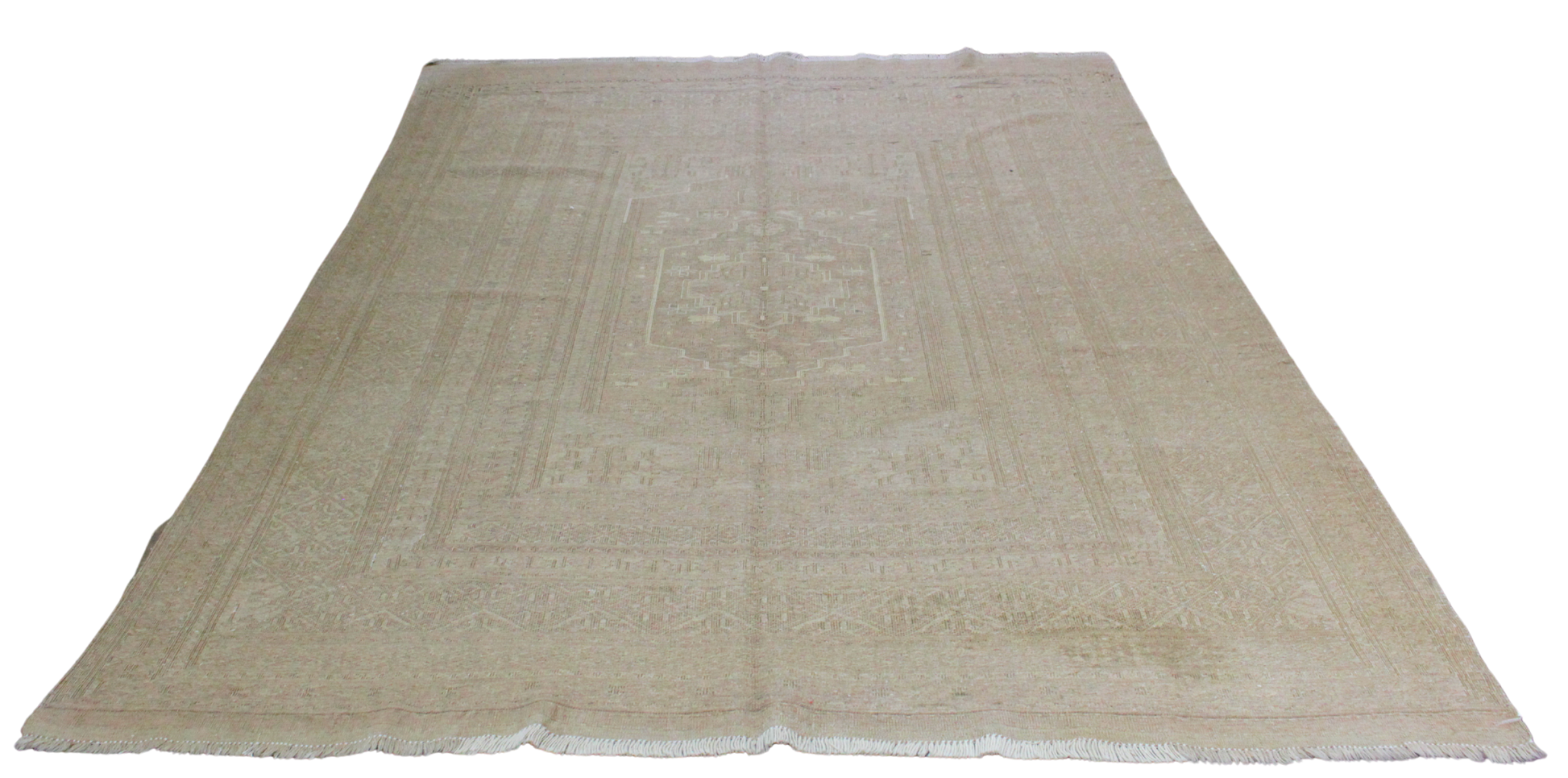 Subtle Geometry — Afghan Santafe Rug in Monochrome Sand (6.8 × 9.6 ft)