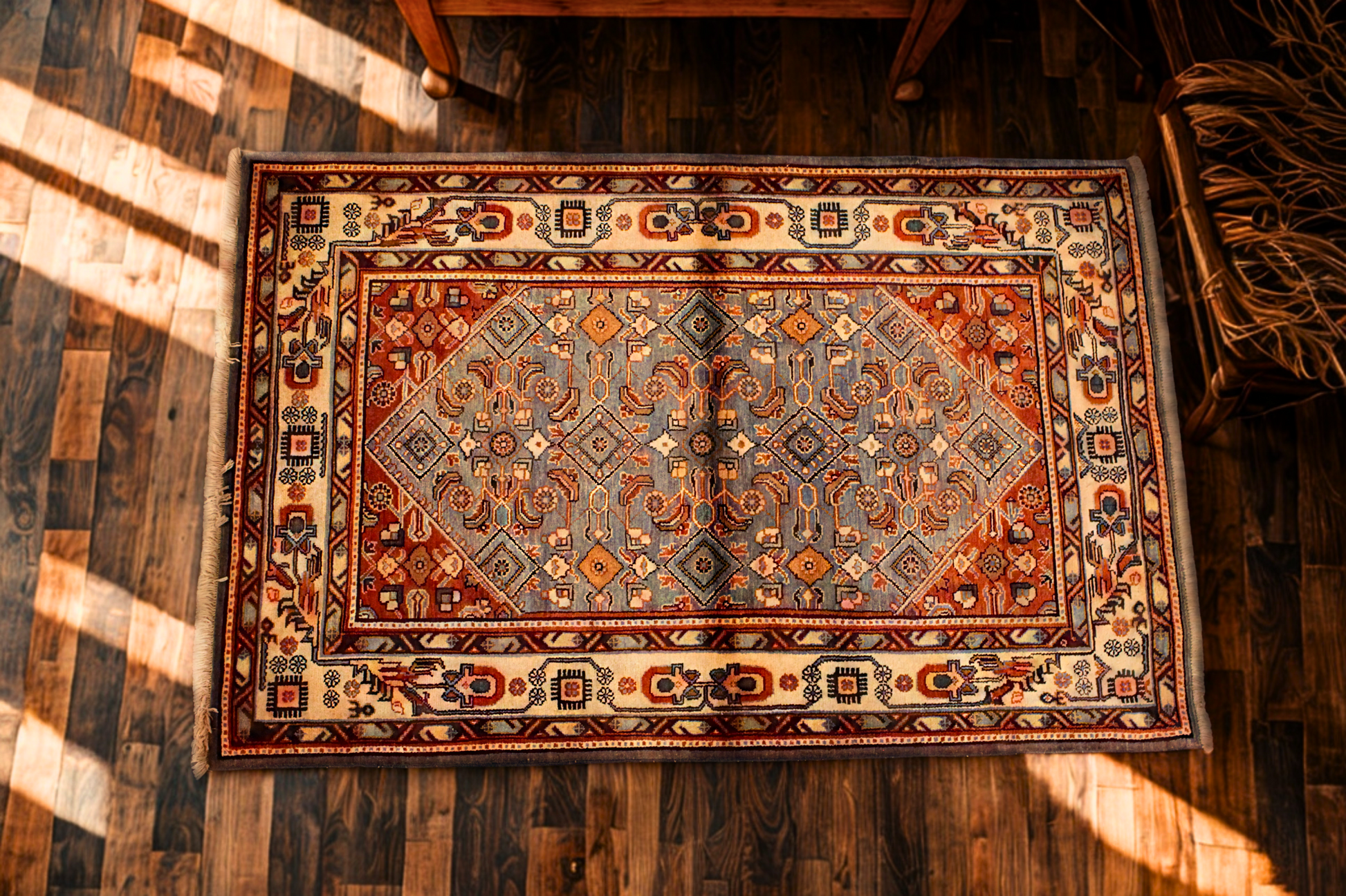 Serene Geometry — Heriz Rug from Persia (3.7 × 5.5 ft)