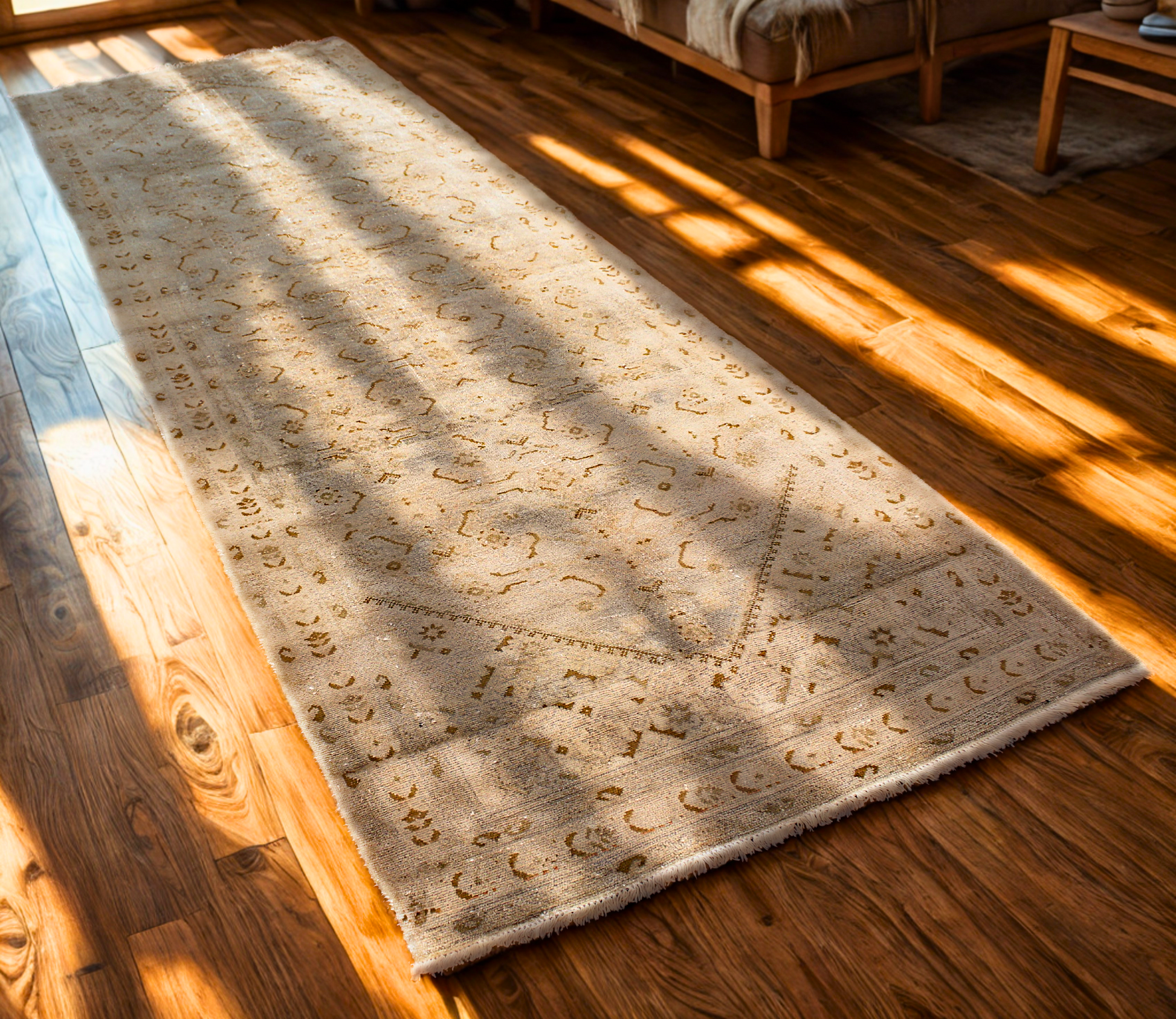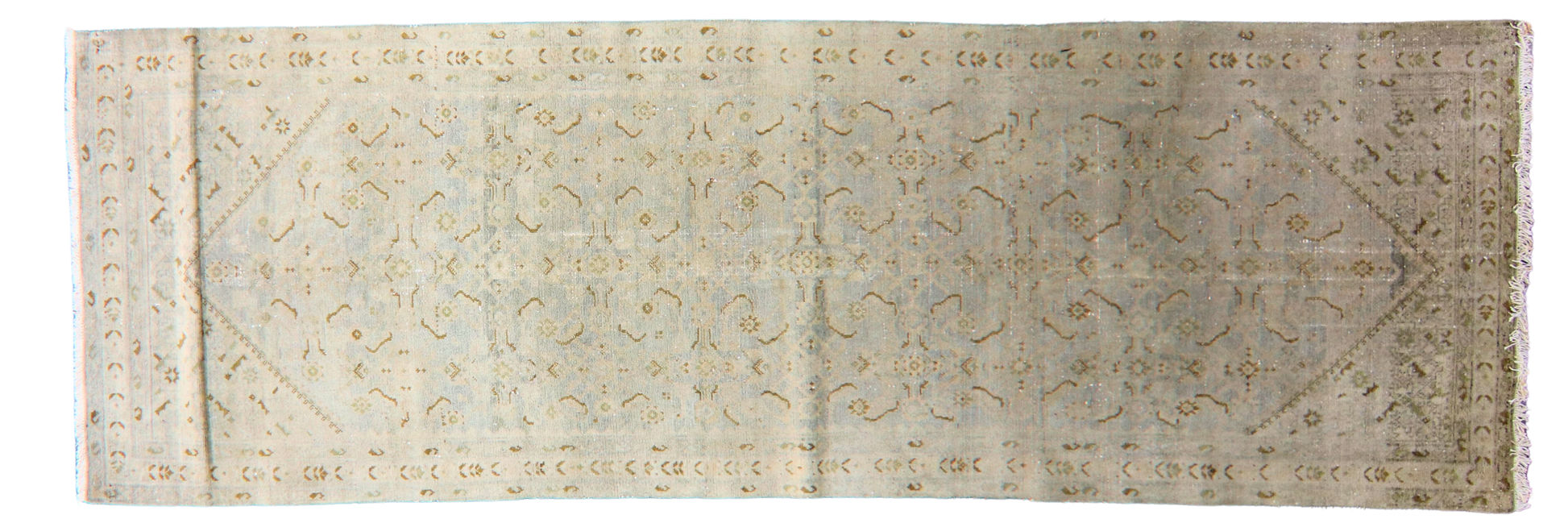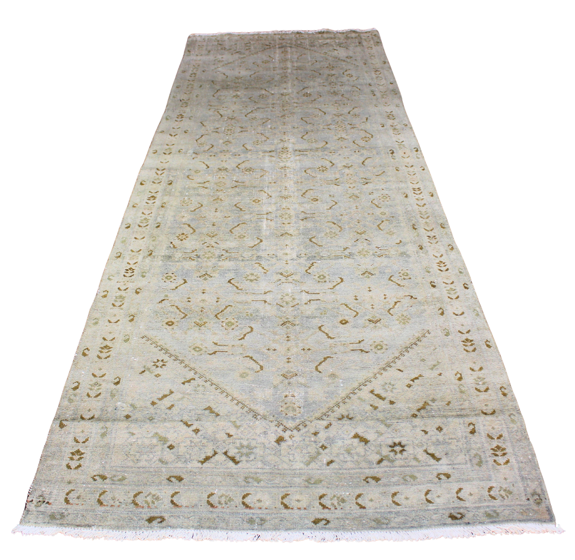 Antique Malayer Runner in Subdued Khaki and Cream (4.4 × 13.1 ft)