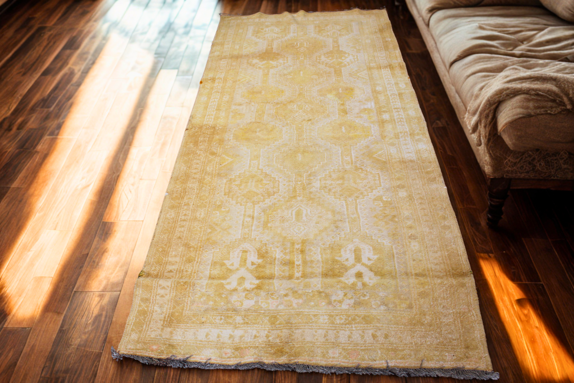 Sunlit Relic — Antique Turkish Oushak Runner in Faded Gold (4.1 × 9.1 ft)