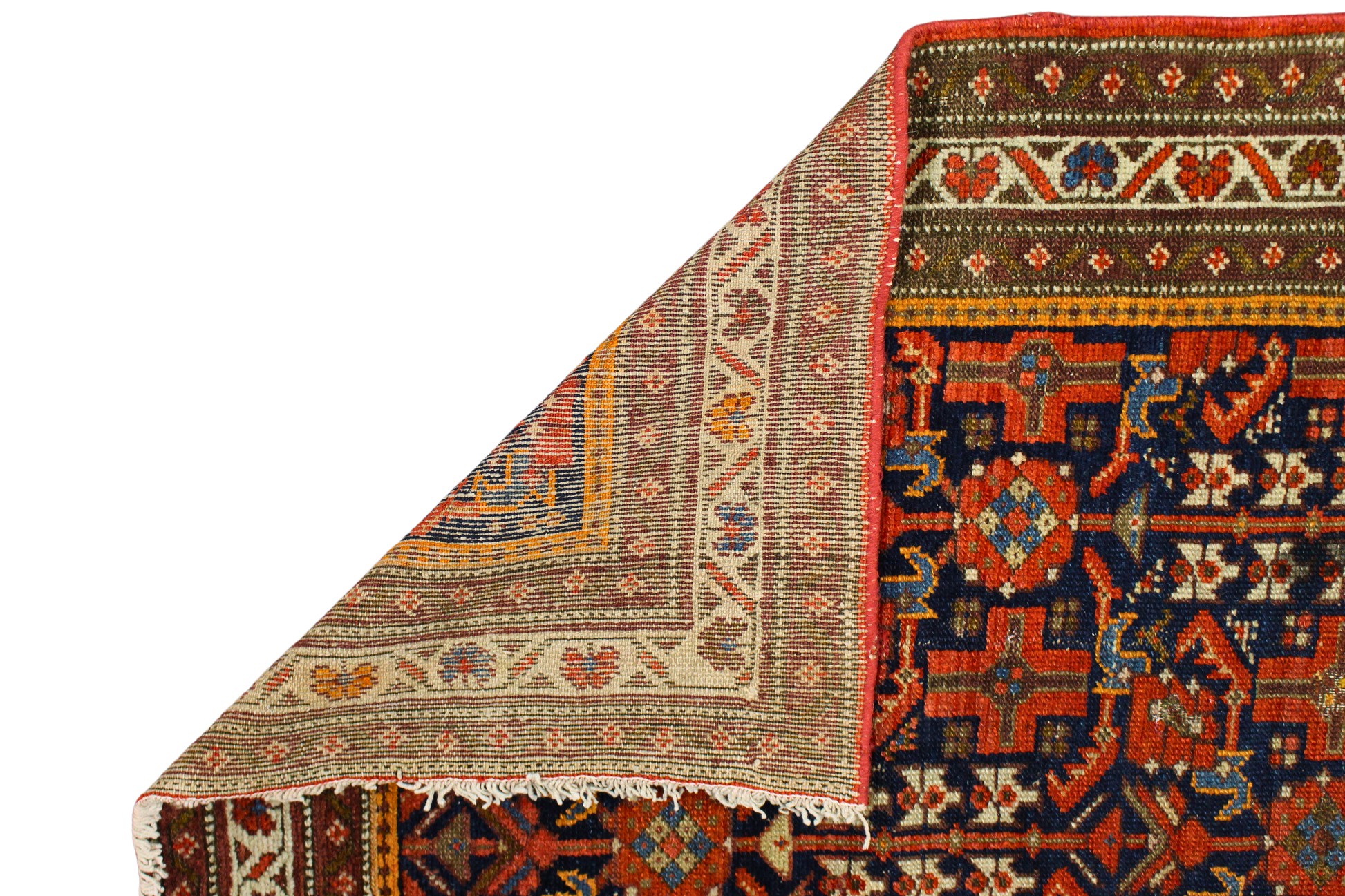 Though over a century old, the rug maintains a powerful graphic presence, showing the endurance of hand-spun wool and natural vegetable dyes. Perfect for lovers of classic tribal designs and authentic antique character.