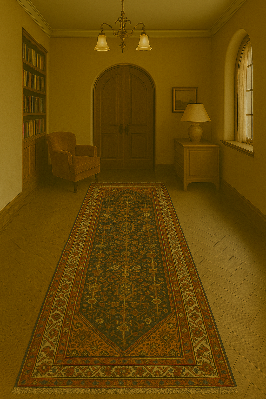 Ideal for a long hallway, grand entrance, or alongside a library wall, this runner balances ornamental luxury with antique soul.