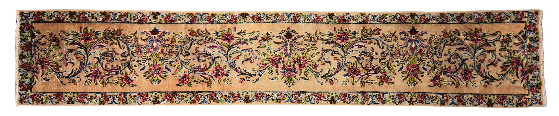 Romantic Flourish — Antique Kerman Runner from Persia (2.9 × 14.10 ft)