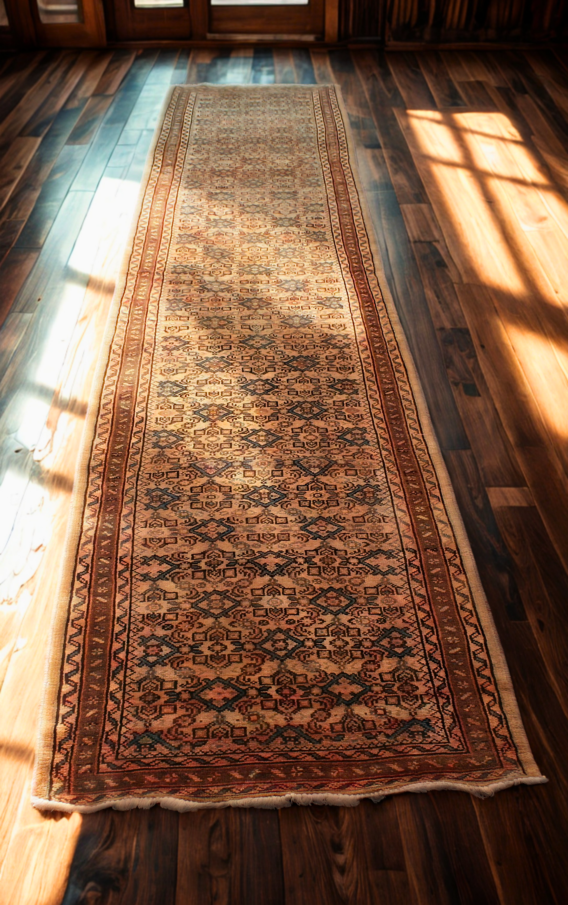 Subtle Geometry — Antique Hamedan Runner from Persia (2.9 × 13 ft)