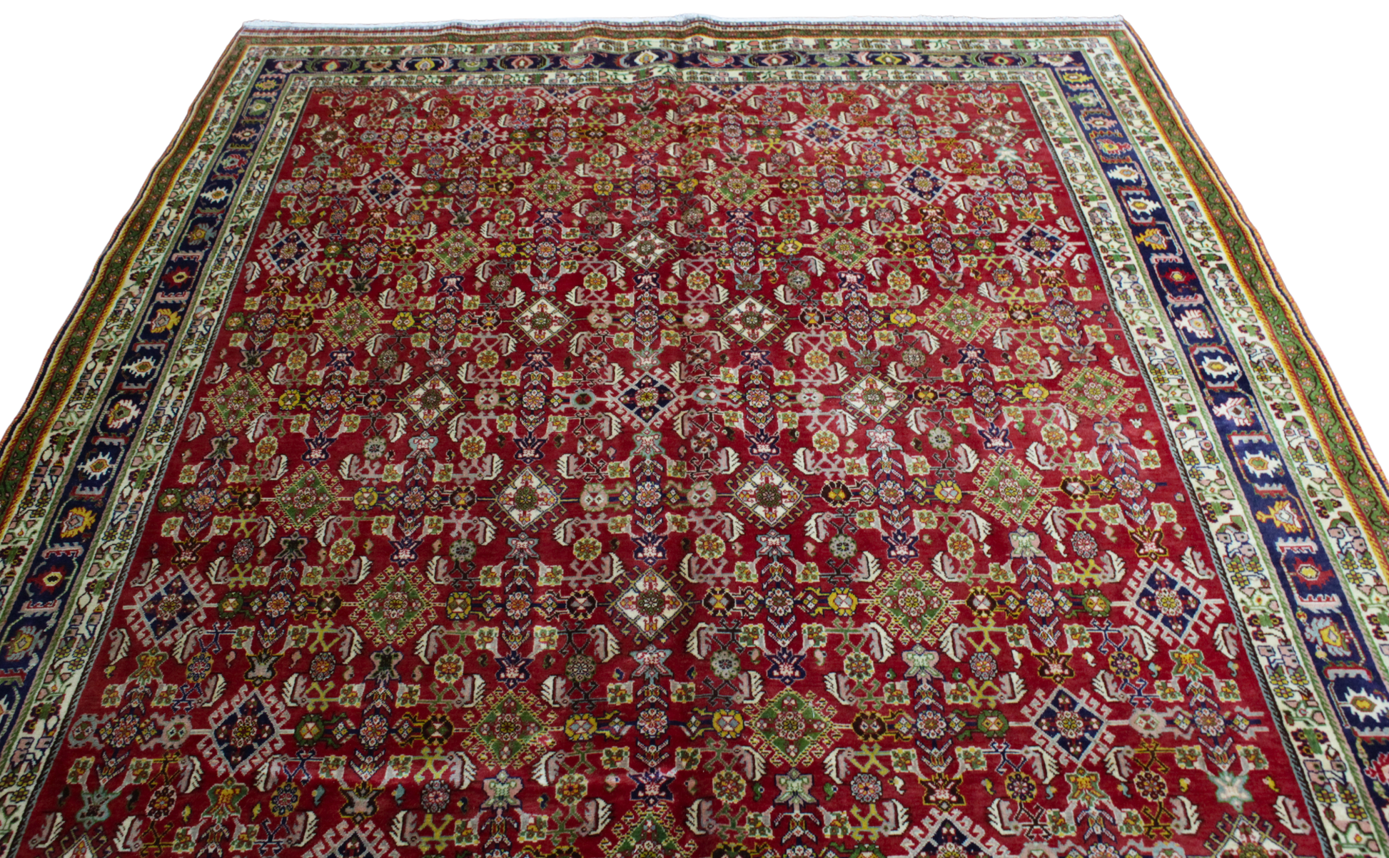 Each symbol reflects a long lineage of Persian tribal design, giving this piece a sense of cultural depth and artistic harmony. Its size and vibrancy make it perfect for anchoring dining rooms, studies, or richly layered living spaces where a bold centerpiece is called for.