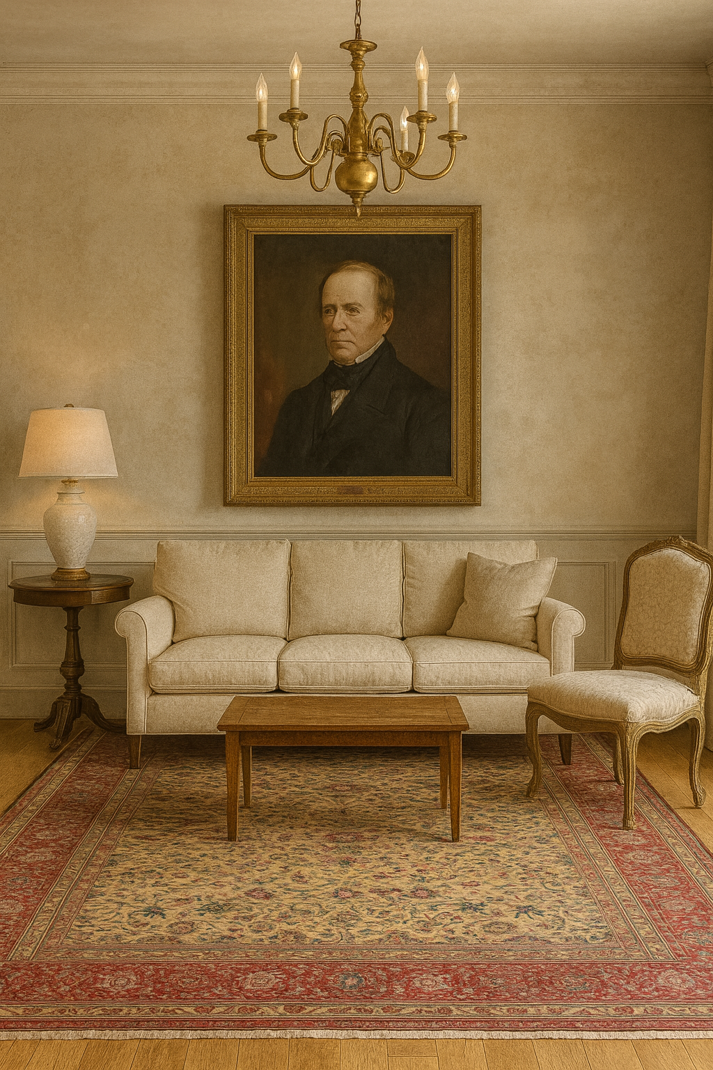 Perfect for grounding a refined seating area, reading room, or formal living space, this antique piece brings timeless sophistication to interiors that favor grace and quiet luxury.