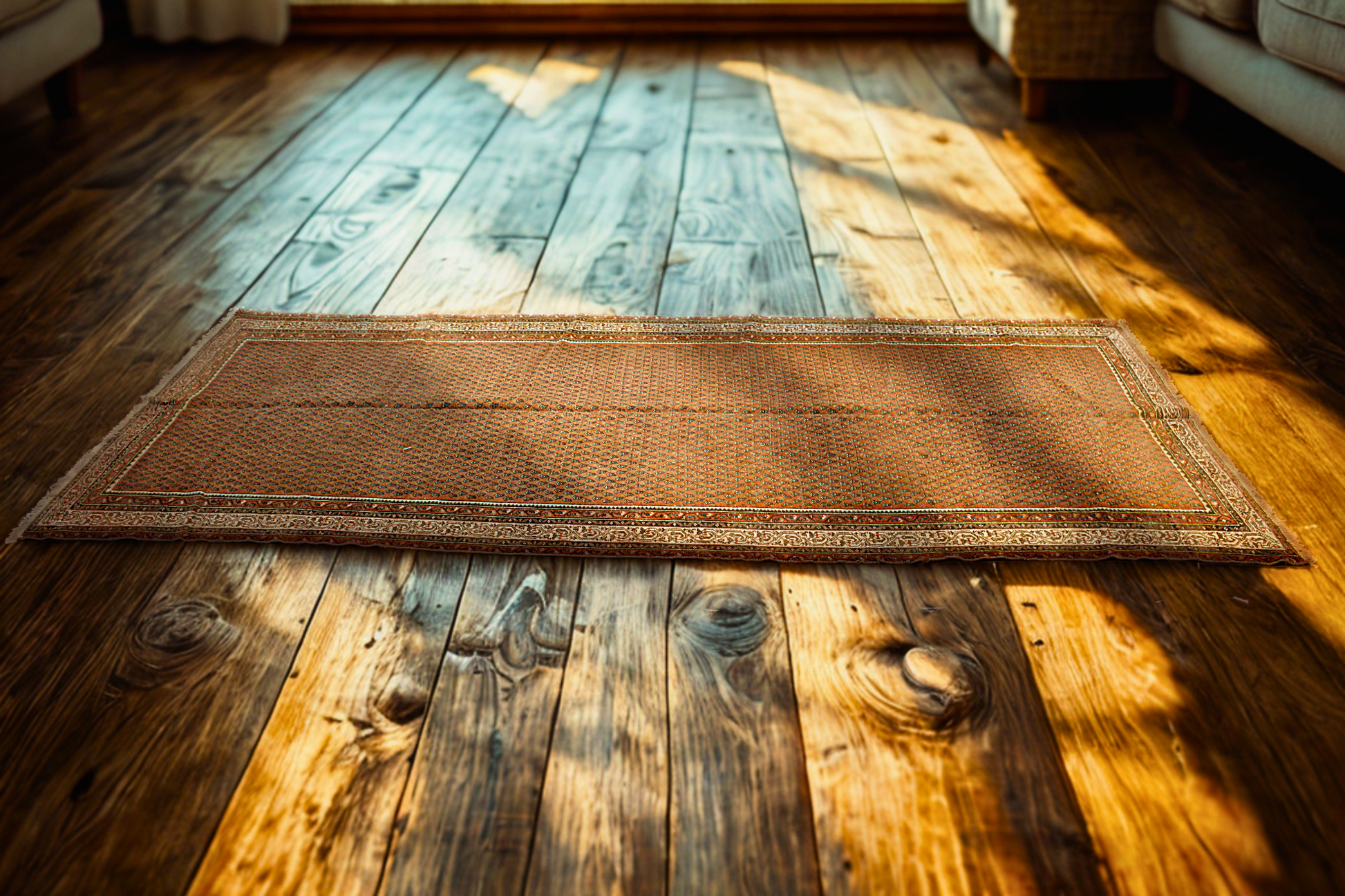 Subtle abrash in the field introduces warm tonal variations, giving the rug an aged and authentic presence. The crisp ivory main border, filled with scrolling palmettes and floral meanders, adds visual contrast and frames the composition with elegance.