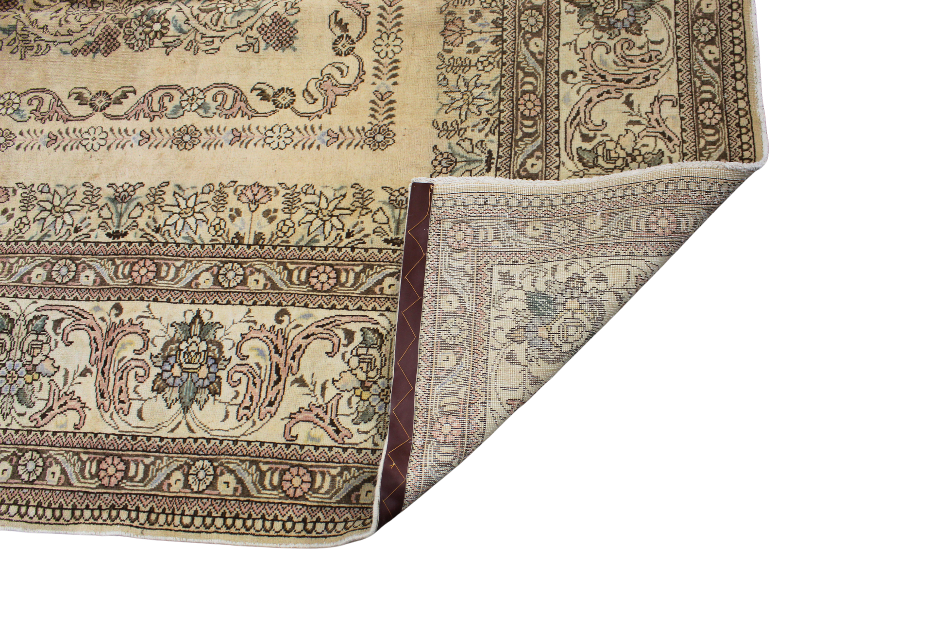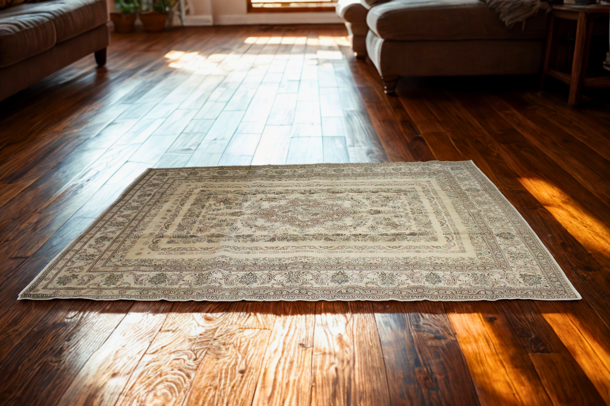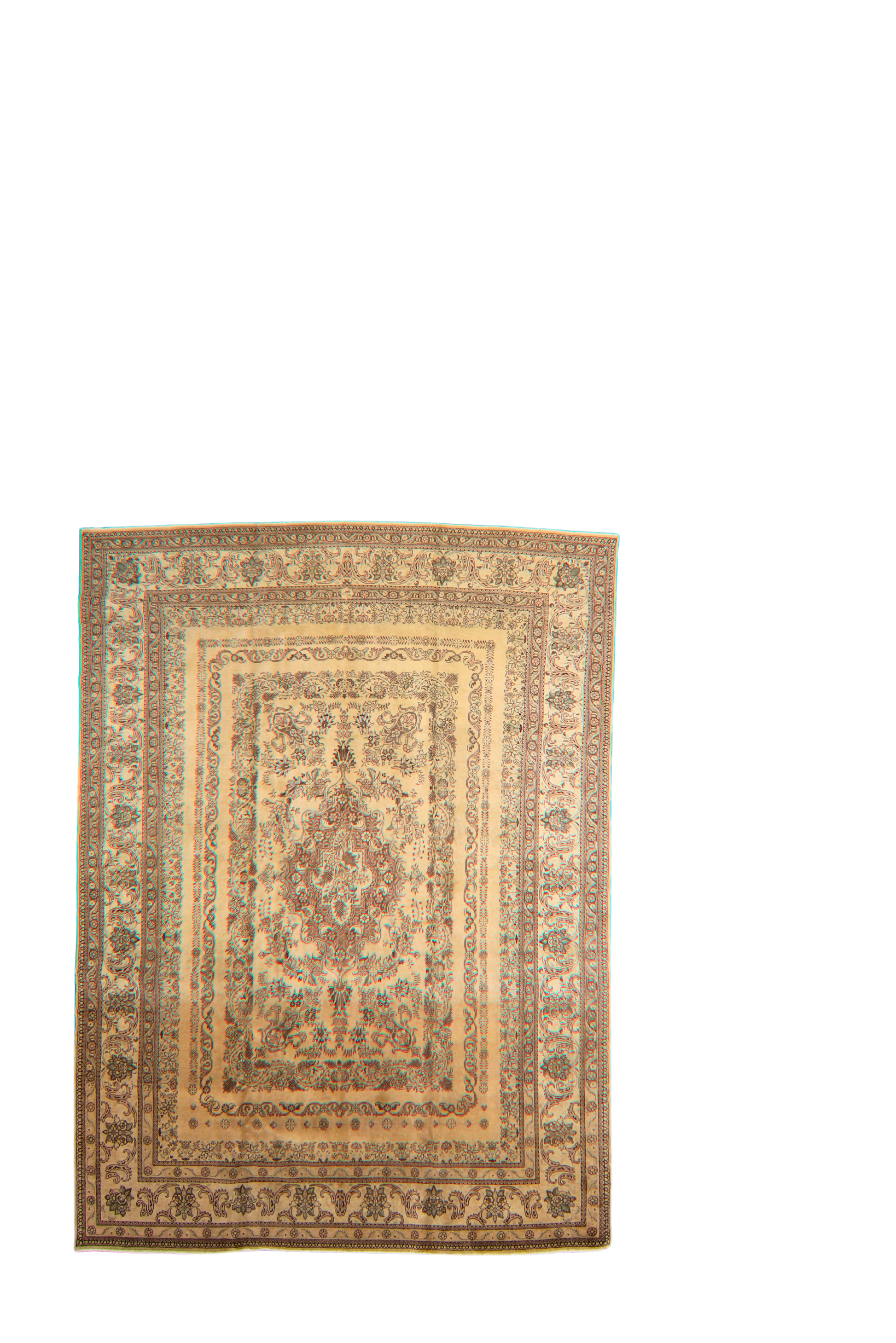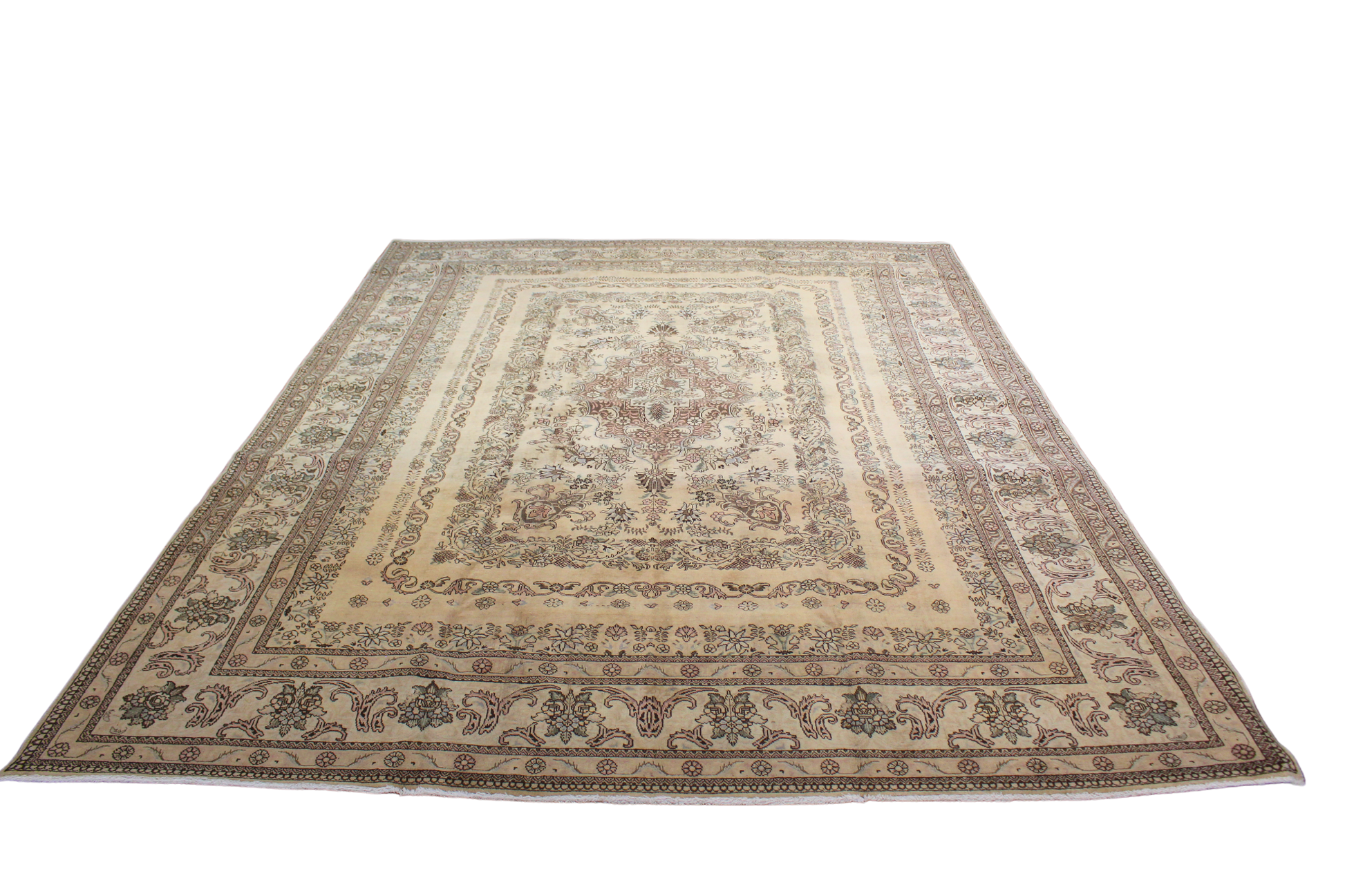 The multiple guard borders, punctuated with floral rosettes and trailing vines, frame the field beautifully and add a sense of regal formality to the piece. With its neutral tones and meticulous detail, this rug is ideal for refined traditional or transitional interiors, offering a foundation that is both understated and timeless.