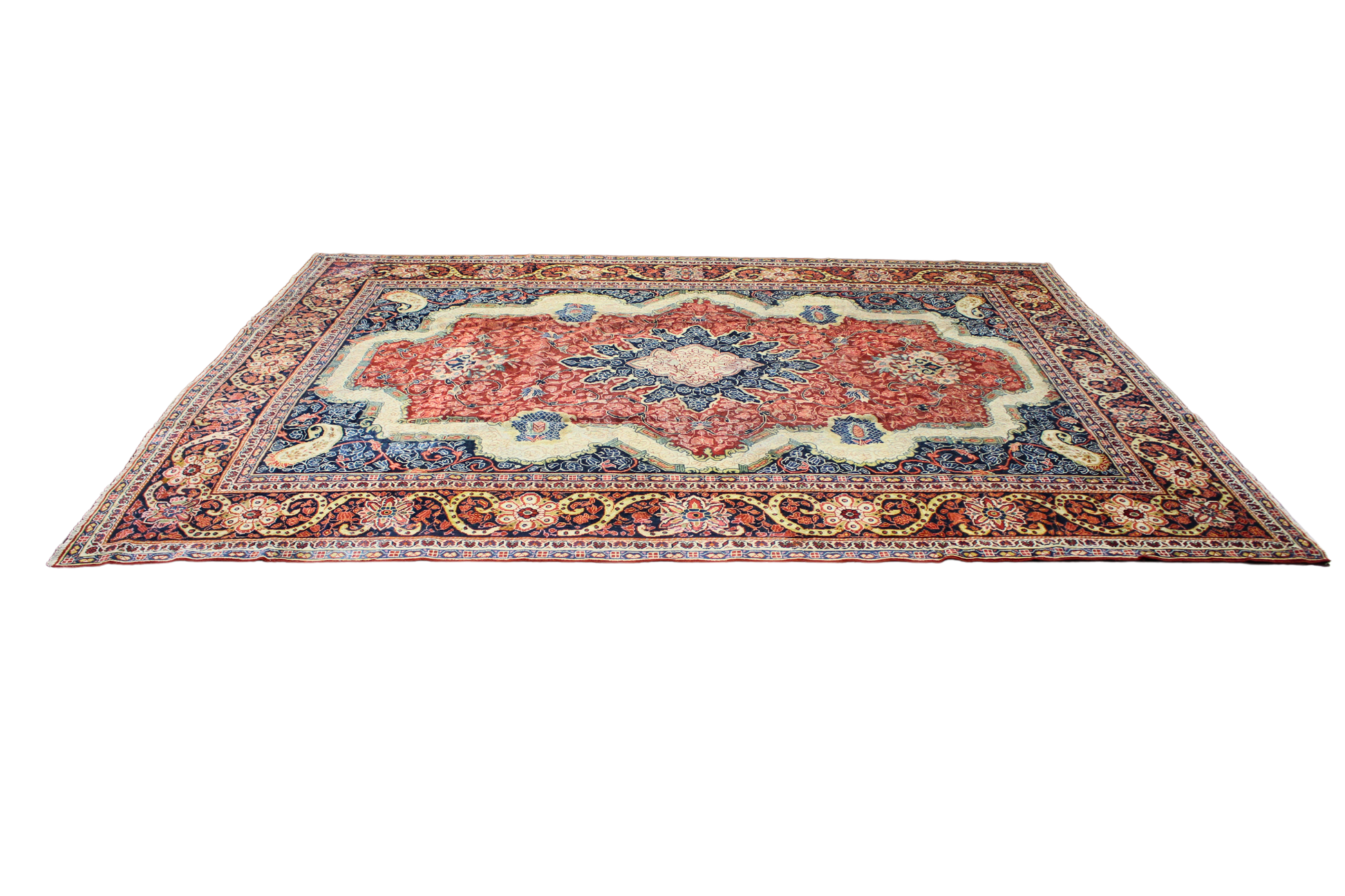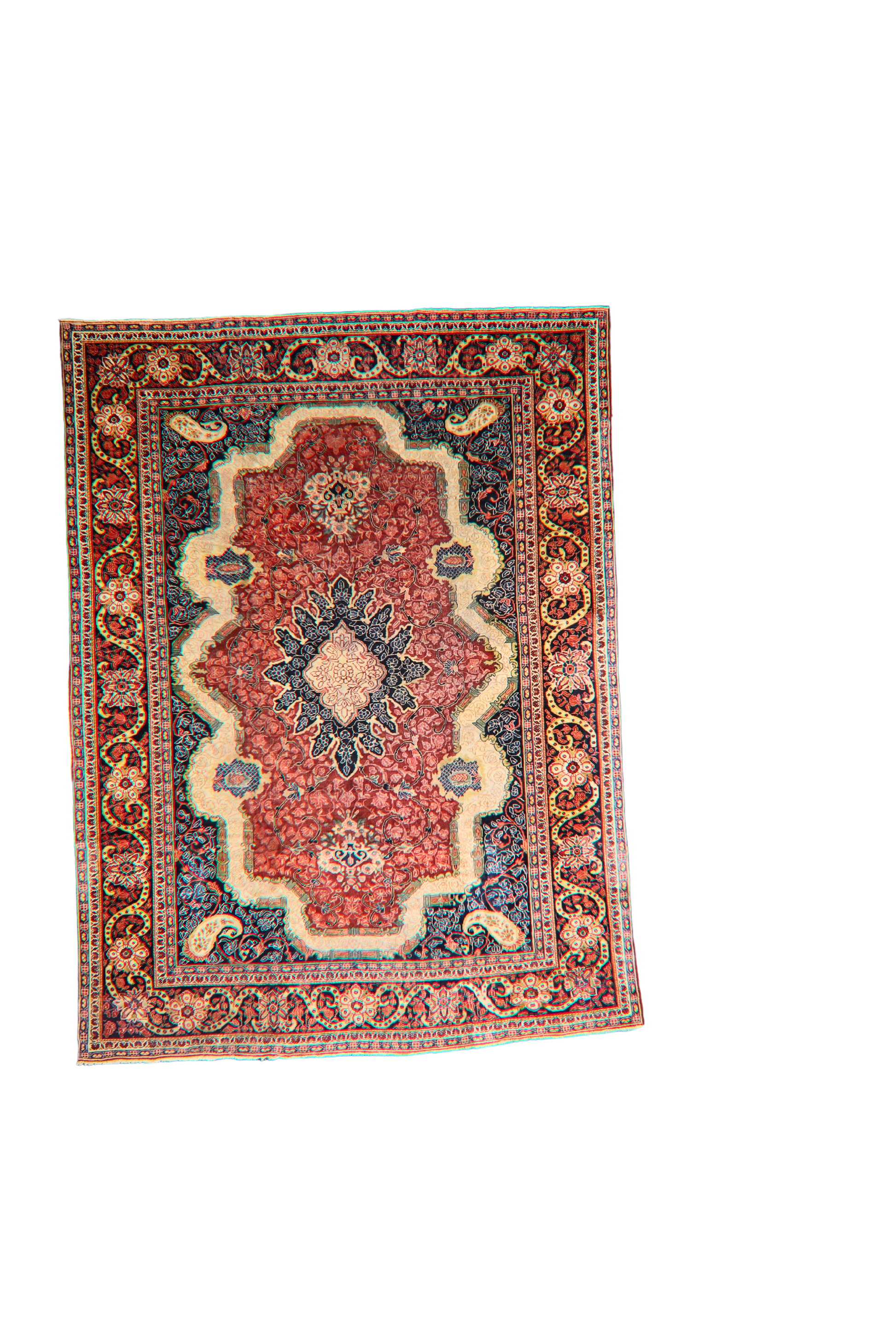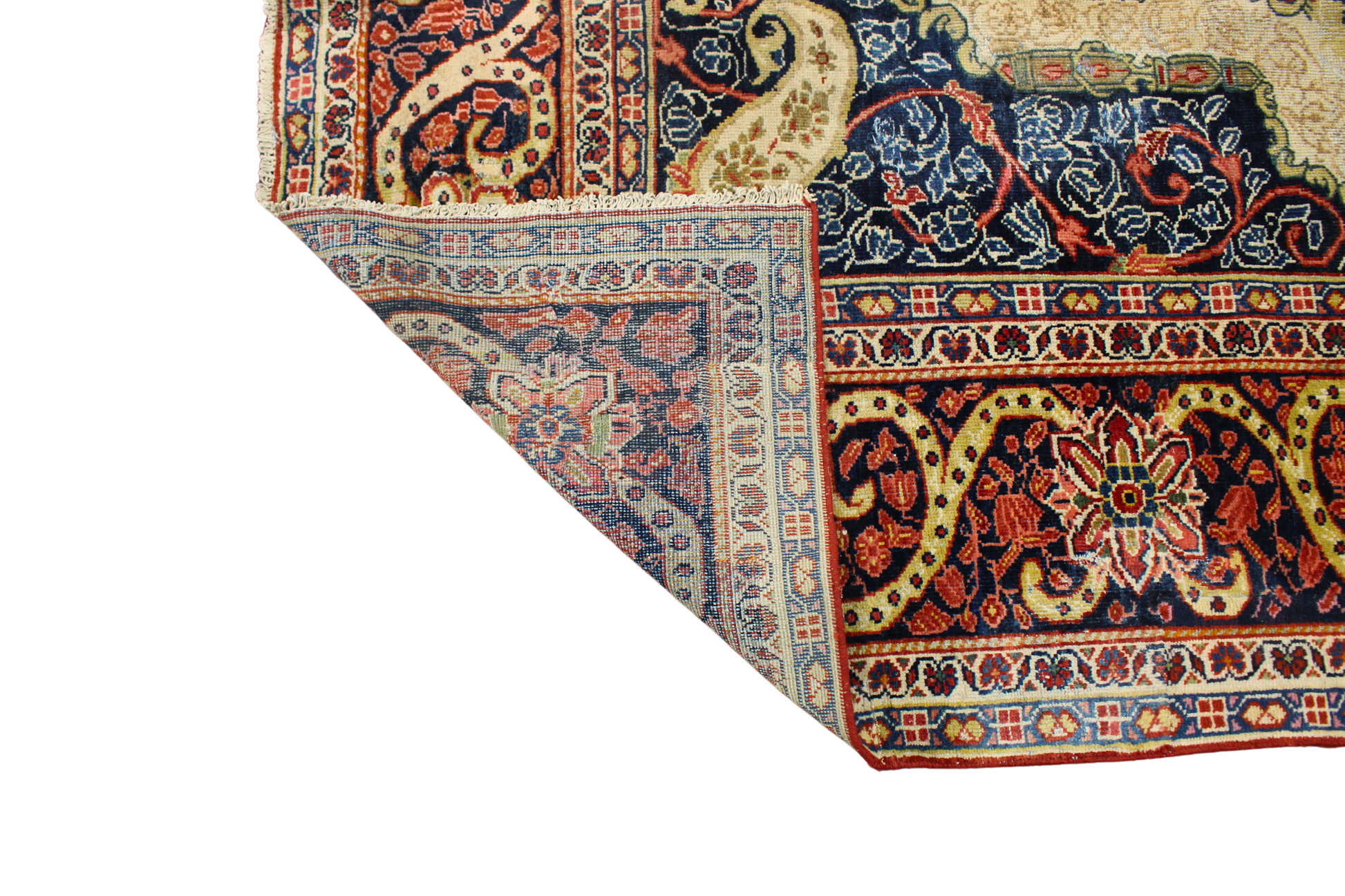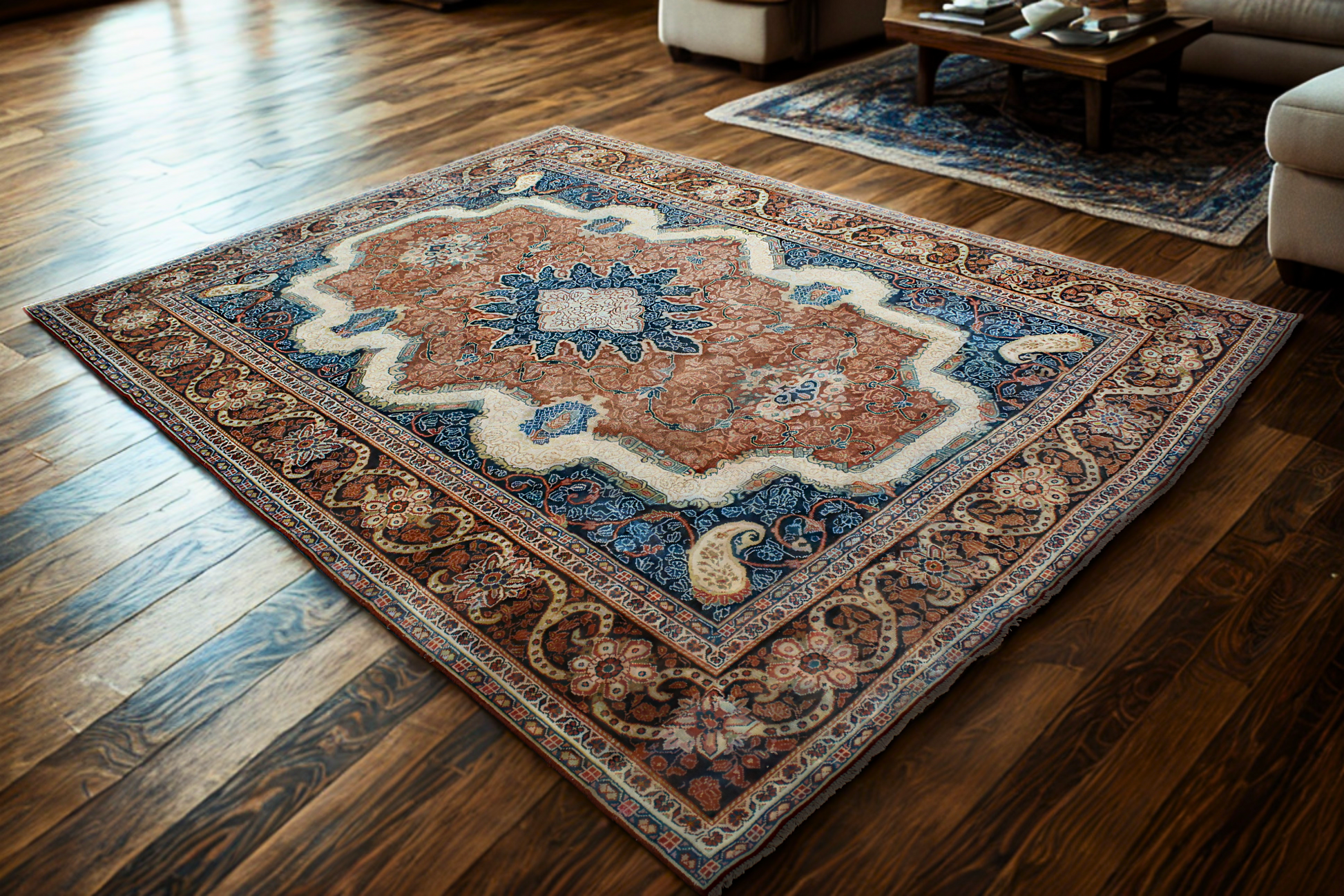 The scalloped medallion design — a hallmark of village weavings — gives this rug a sense of depth and structure, while the repeating corner elements and lush border work speak to the finesse of Persian craftsmanship. Its generous size and captivating colorway make it ideal for anchoring a formal living room or grand dining space.