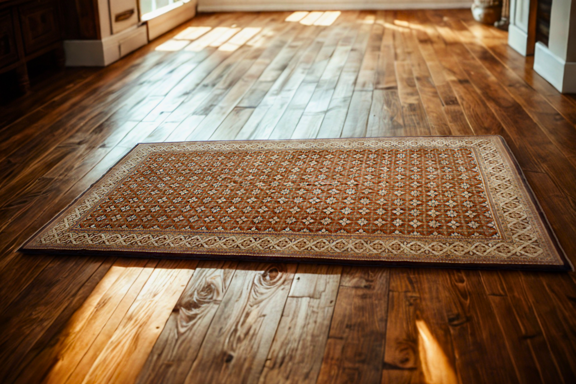 Its extra-long proportions and intricate pattern make it ideal for a grand hallway, gallery, or formal dining room, where the balance of color and structure brings sophistication without overwhelming the space.