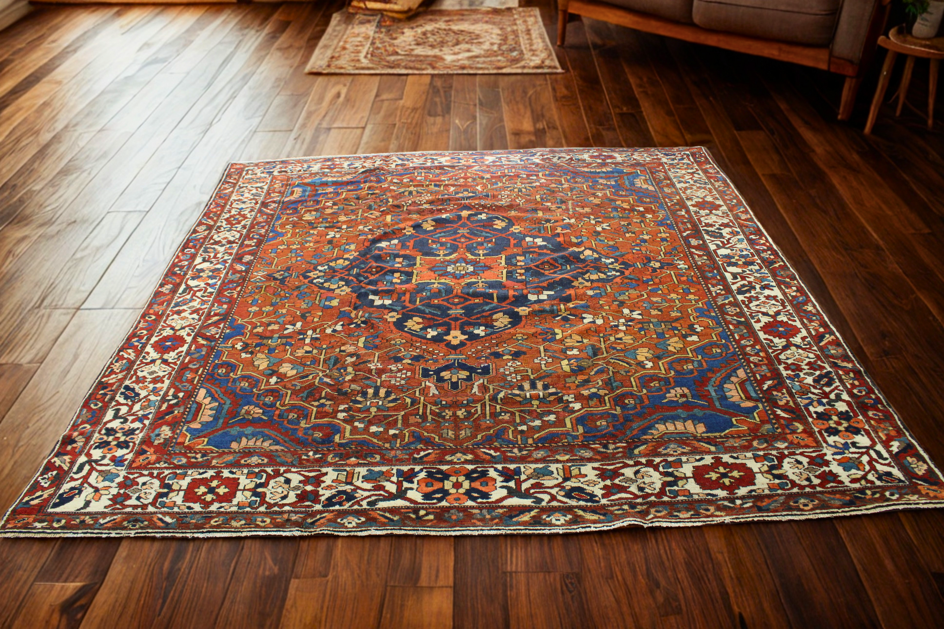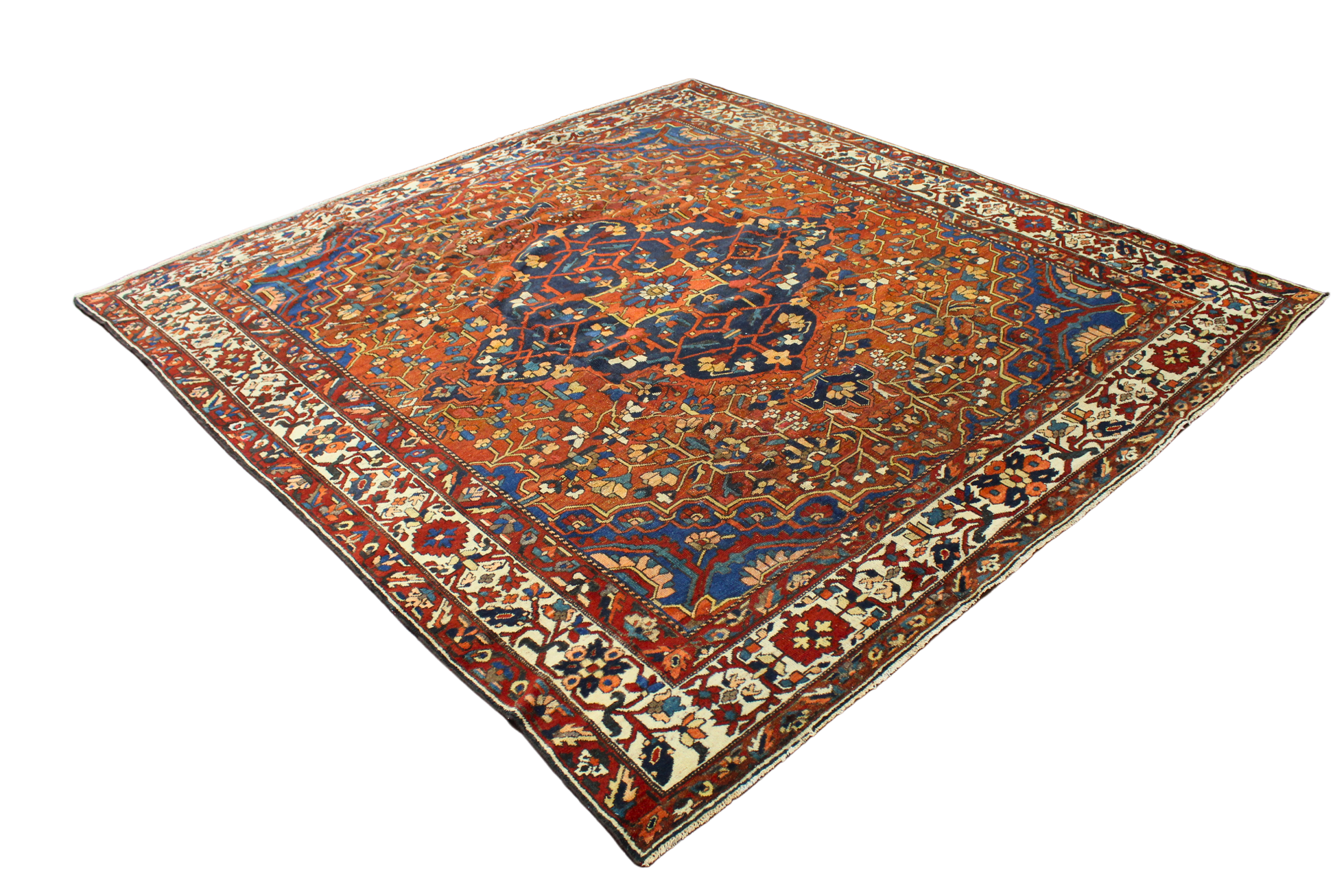 Antique Bakhtiari Square Rug – 10'6" × 10'6"