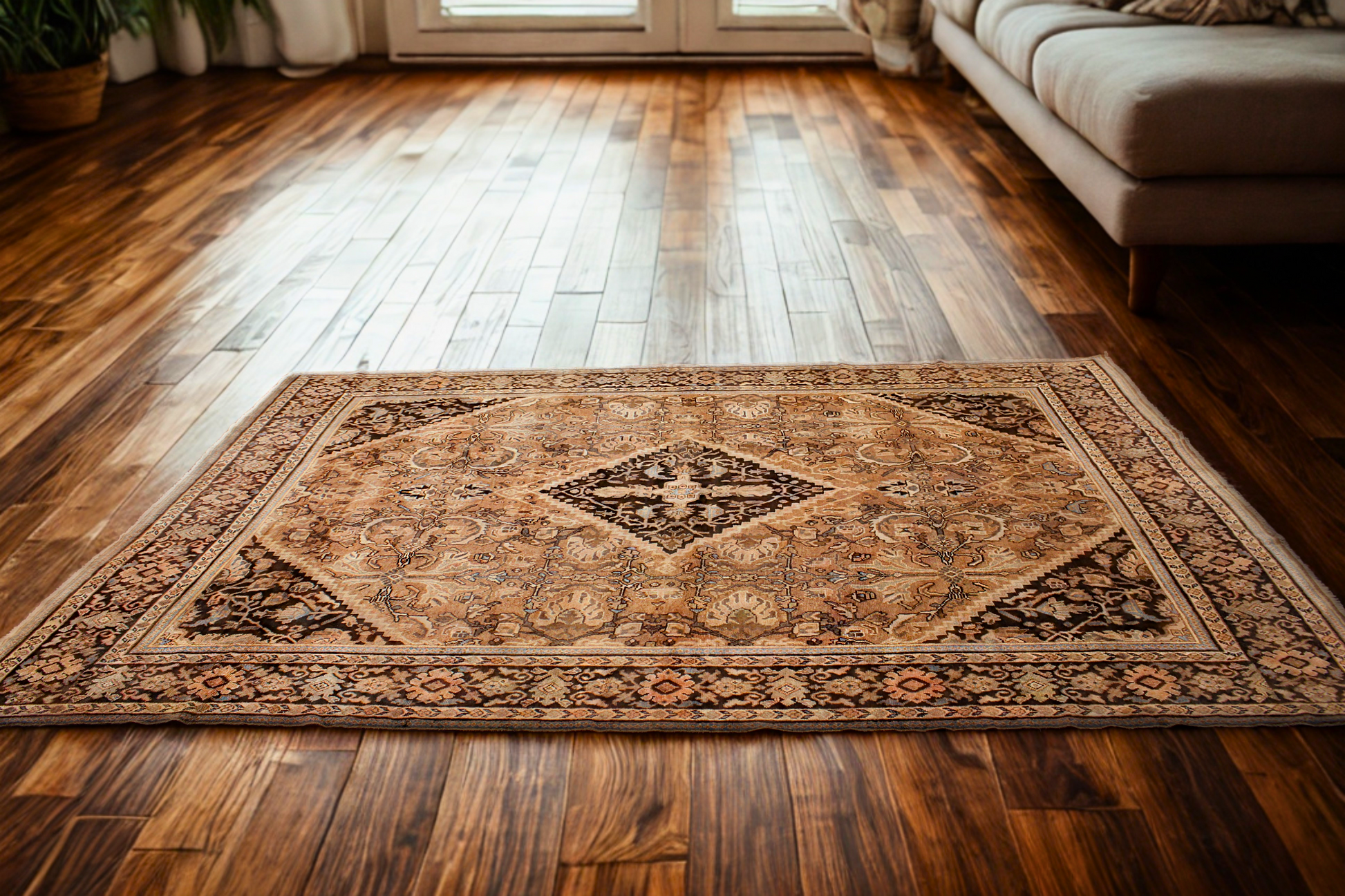 The spandrels and borders add symmetry and structure, framed by a repeating rosette-and-vine motif that ties the composition together. This is a piece with gentle aged patina and a subdued elegance, ideal for grounding a luxurious sitting room or refined study.