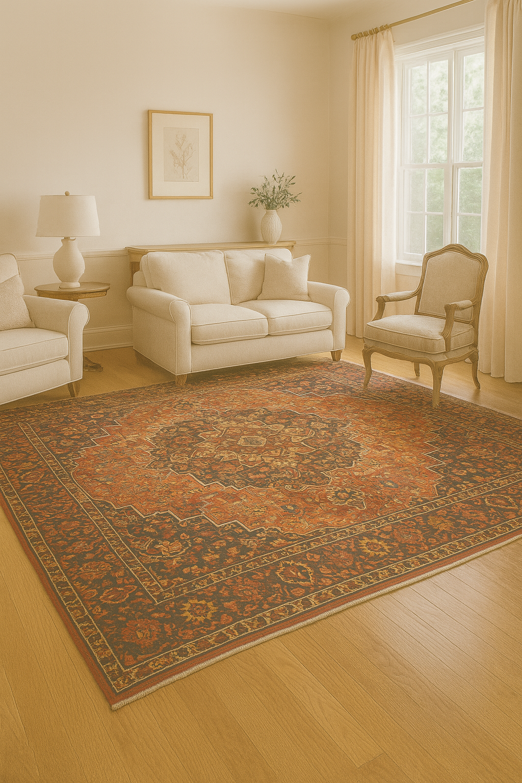 Handwoven with high-quality wool, this piece offers not only visual complexity but remarkable durability. It’s an ideal anchor for formal living rooms, libraries, or curated spaces where antique integrity and vivid artistry are both cherished.