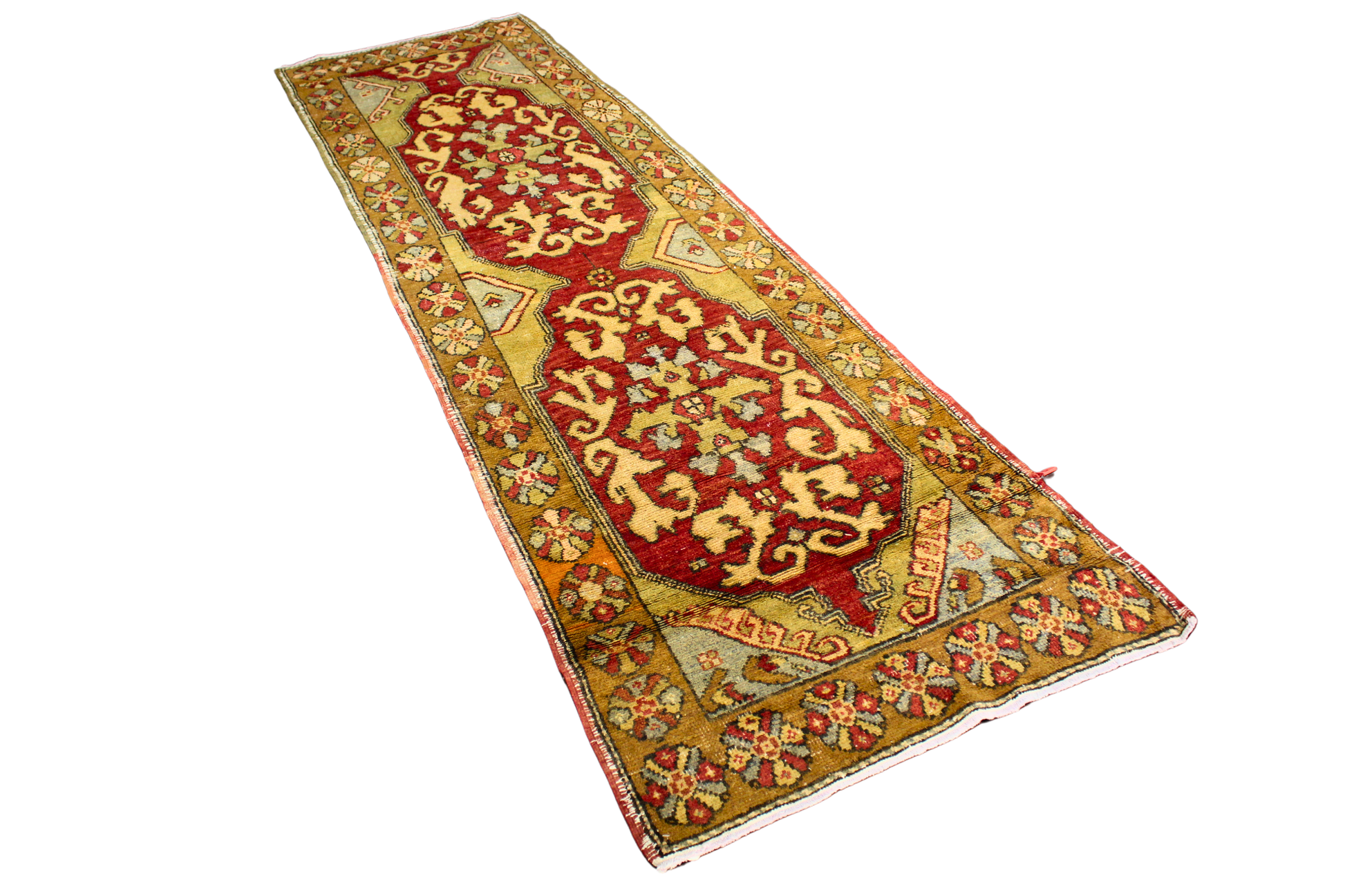 Heritage in Bloom — Antique Turkish Oushak Runner in Crimson and Olive (3 × 10 ft)