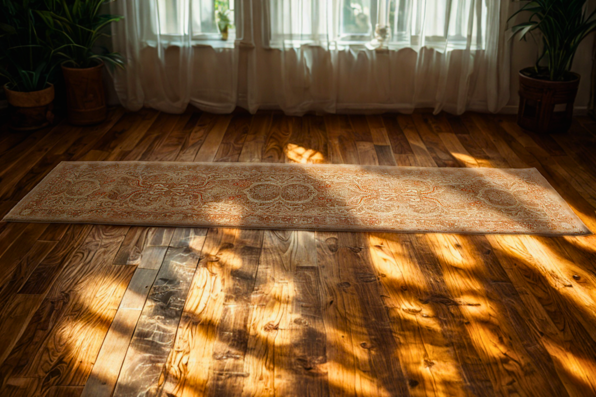 Woven with wool on a cotton foundation, this runner is both sturdy and elegant — perfect for long hallways, behind a sofa, or in a grand kitchen passage. Its subtle abrash and gentle wear give it a lived-in charm ideal for both classic and transitional interiors.