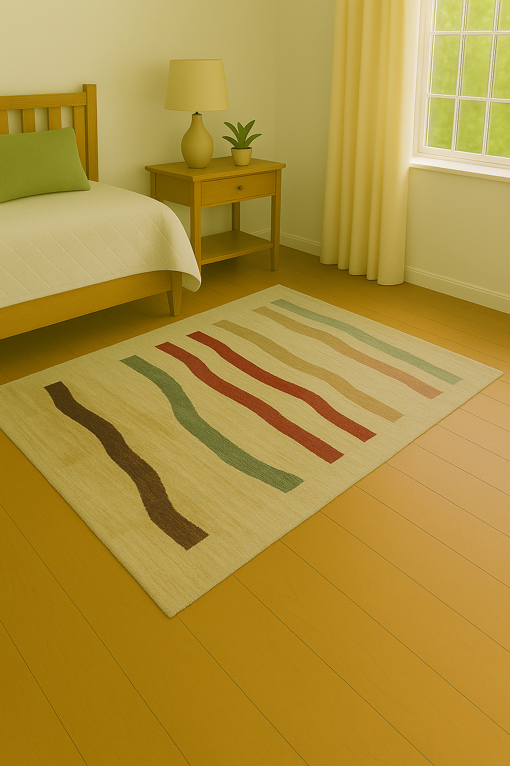 Made from luxuriously thick Afghan wool, this rug is both plush and durable—perfect for adding texture and personality to a modern living room, office, or creative space.