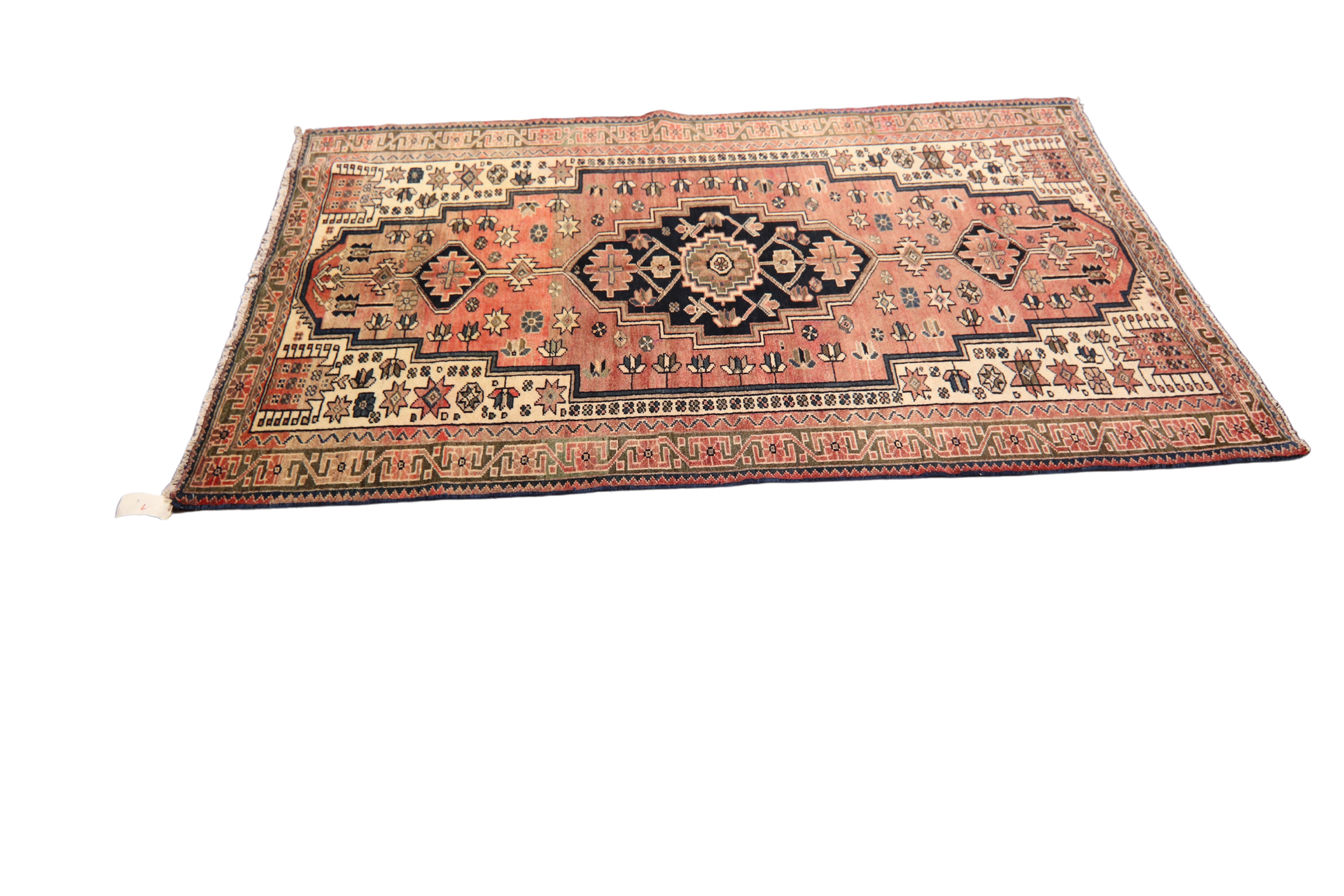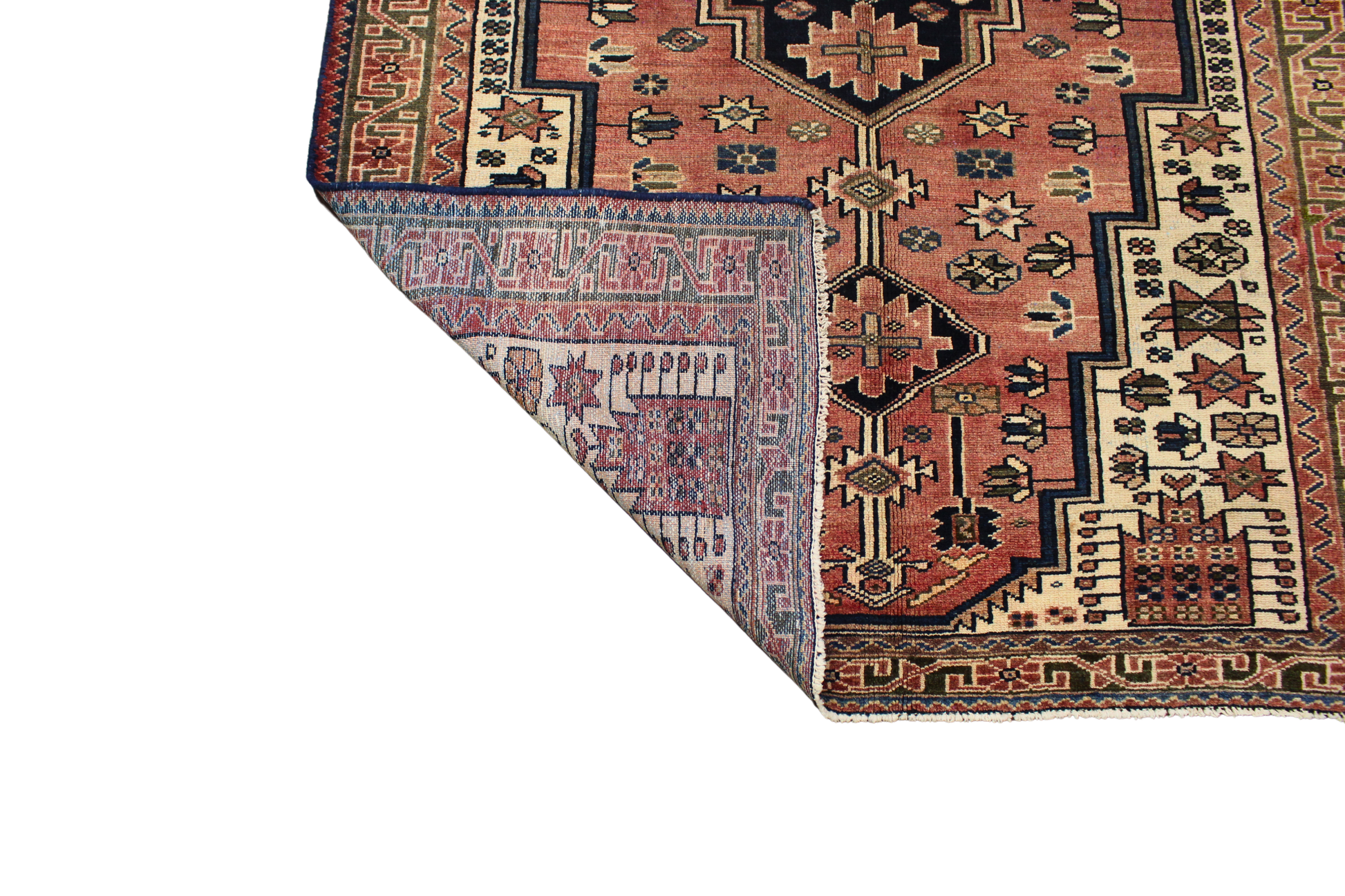 Rust & Midnight Geometry — Antique Malayer Rug (4.2 × 6.6 ft)