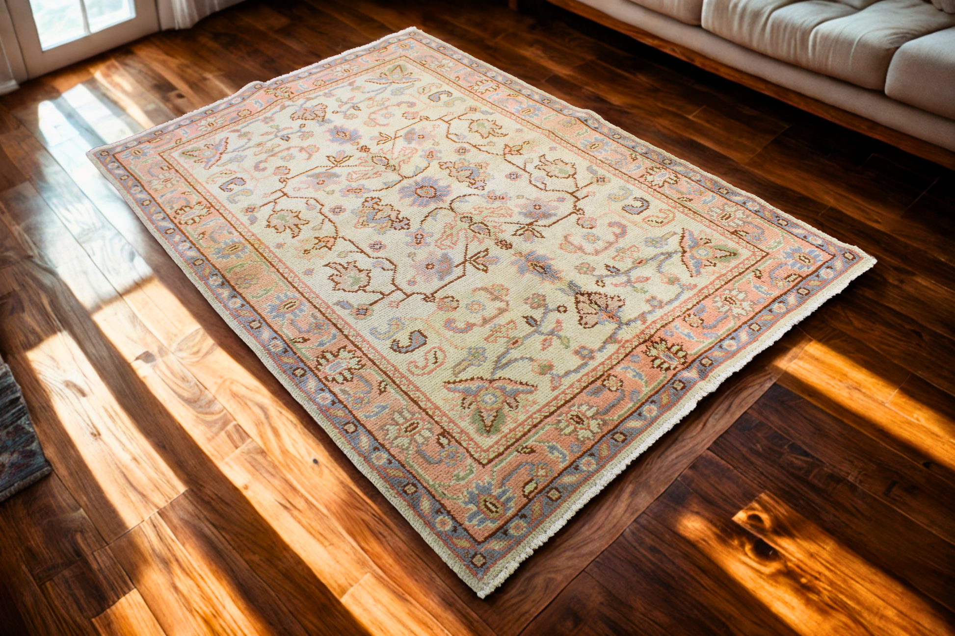 Bold Geometry, Earthy Elegance — Antique Turkish Oushak (4.6 × 6.6 ft)