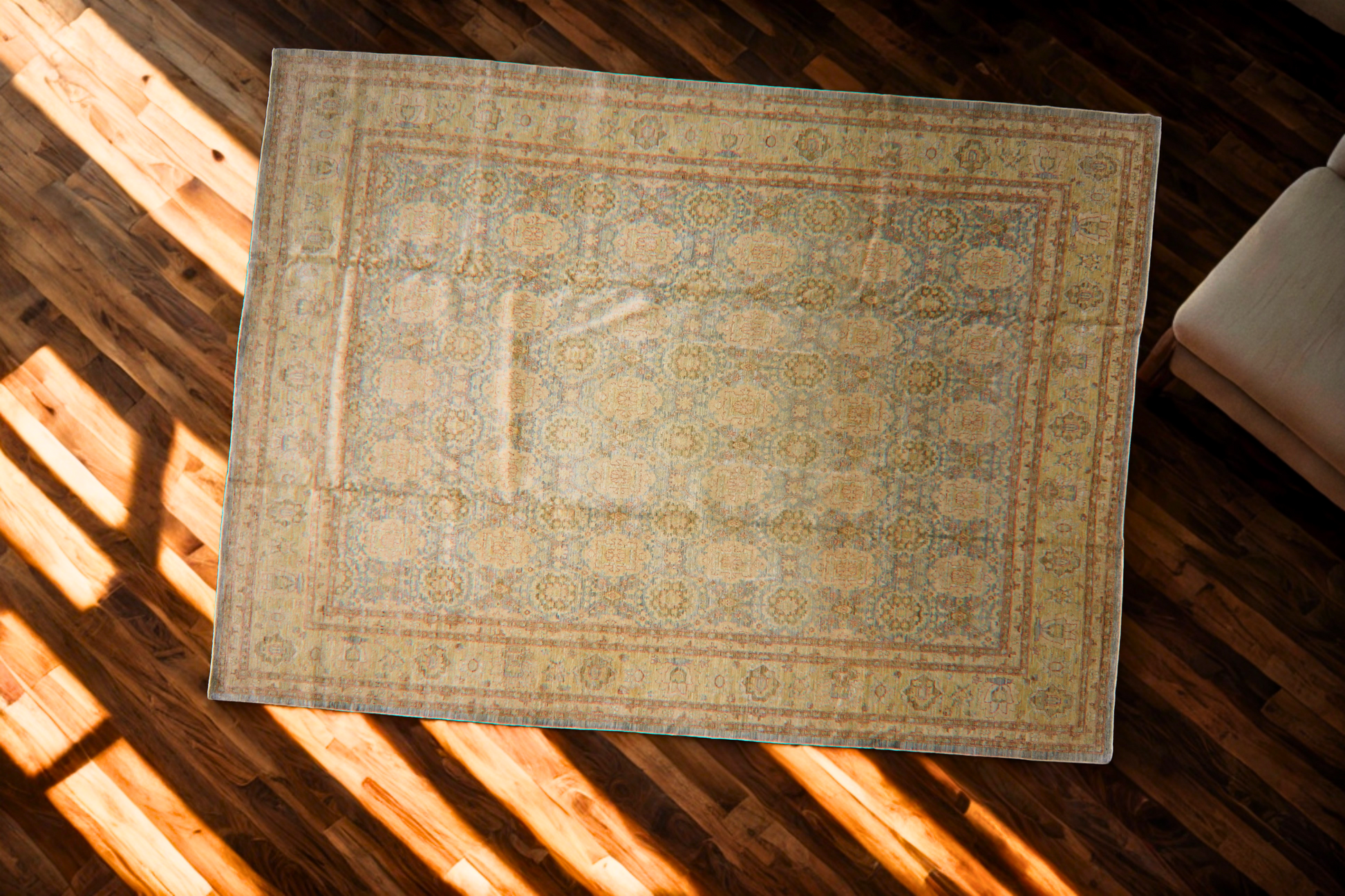 The oversized dimensions and gently worn palette make this rug a perfect anchor for spacious living rooms, formal dining areas, or serene master bedrooms, where it can bring warmth, character, and a sense of history.