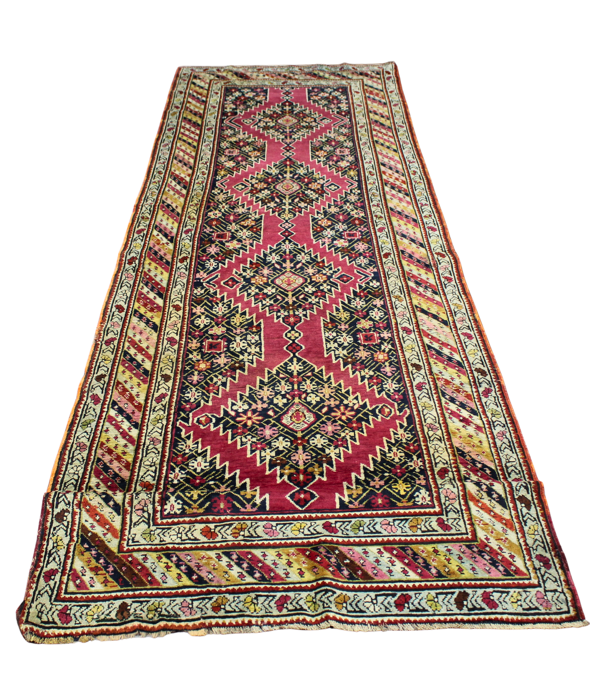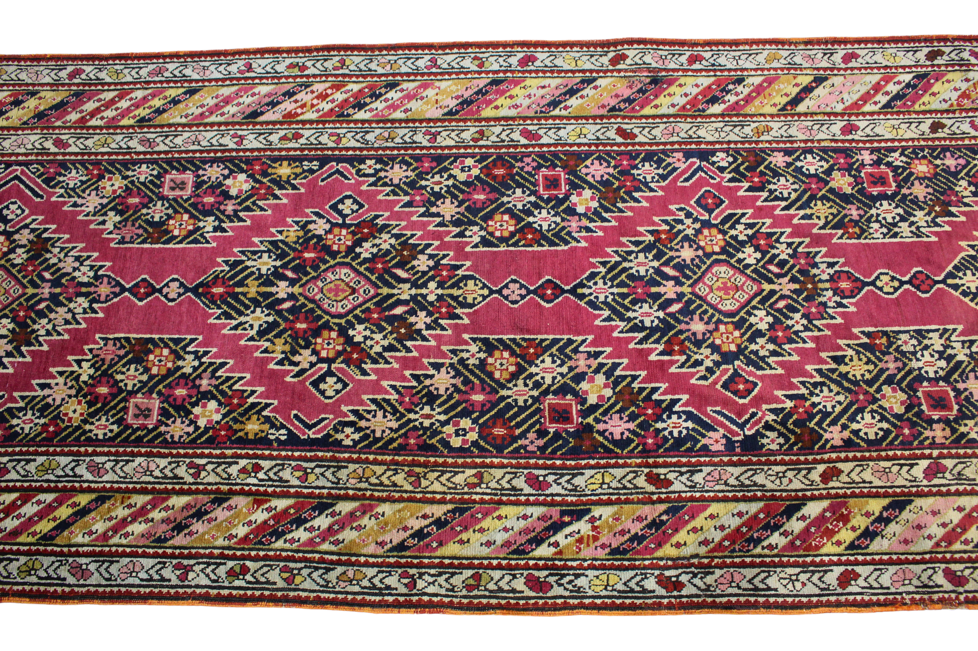 This Karabakh runner is ideal for those seeking a statement piece in entryways, hallways, or alongside long architectural lines. Its saturated hues and bold symmetry embody the highland spirit of Caucasian weaving, where form and flair meet in a striking antique textile.