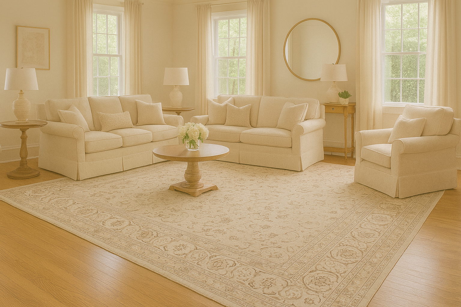 Perfect for elegant living spaces, serene bedrooms, or traditional interiors, this Mashad rug embodies the understated luxury of old-world craftsmanship and enduring beauty.