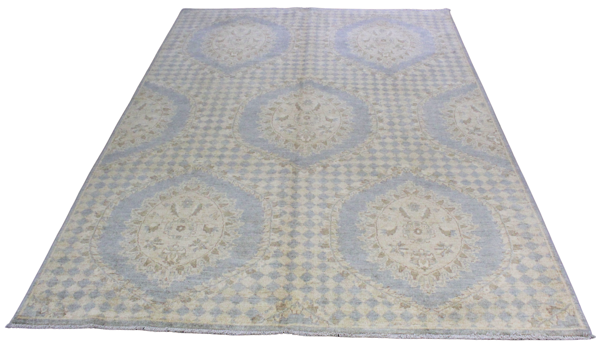 Soft Geometry — Contemporary Oushak Rug from Pakistan (5.11 × 8.10 ft)