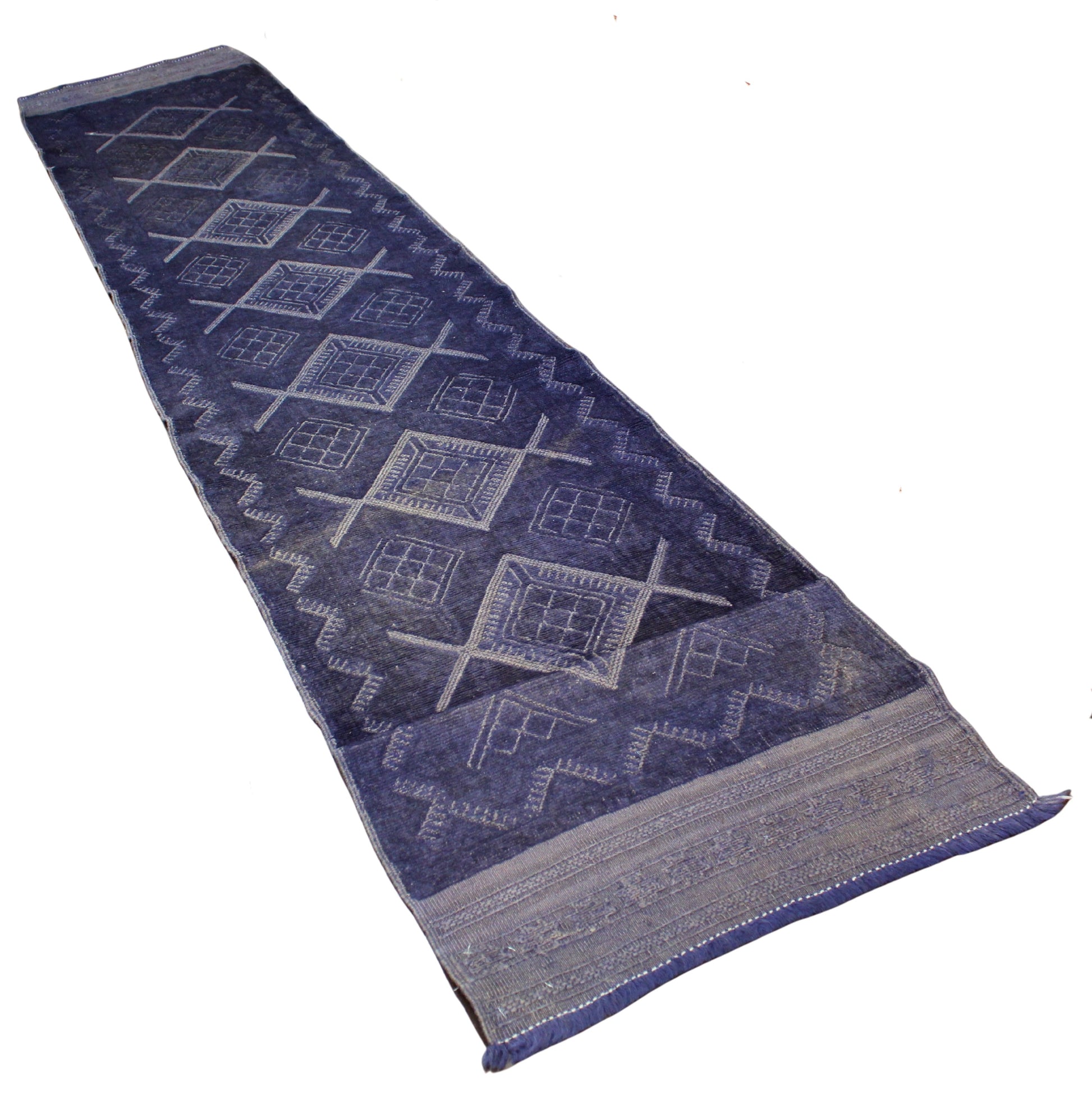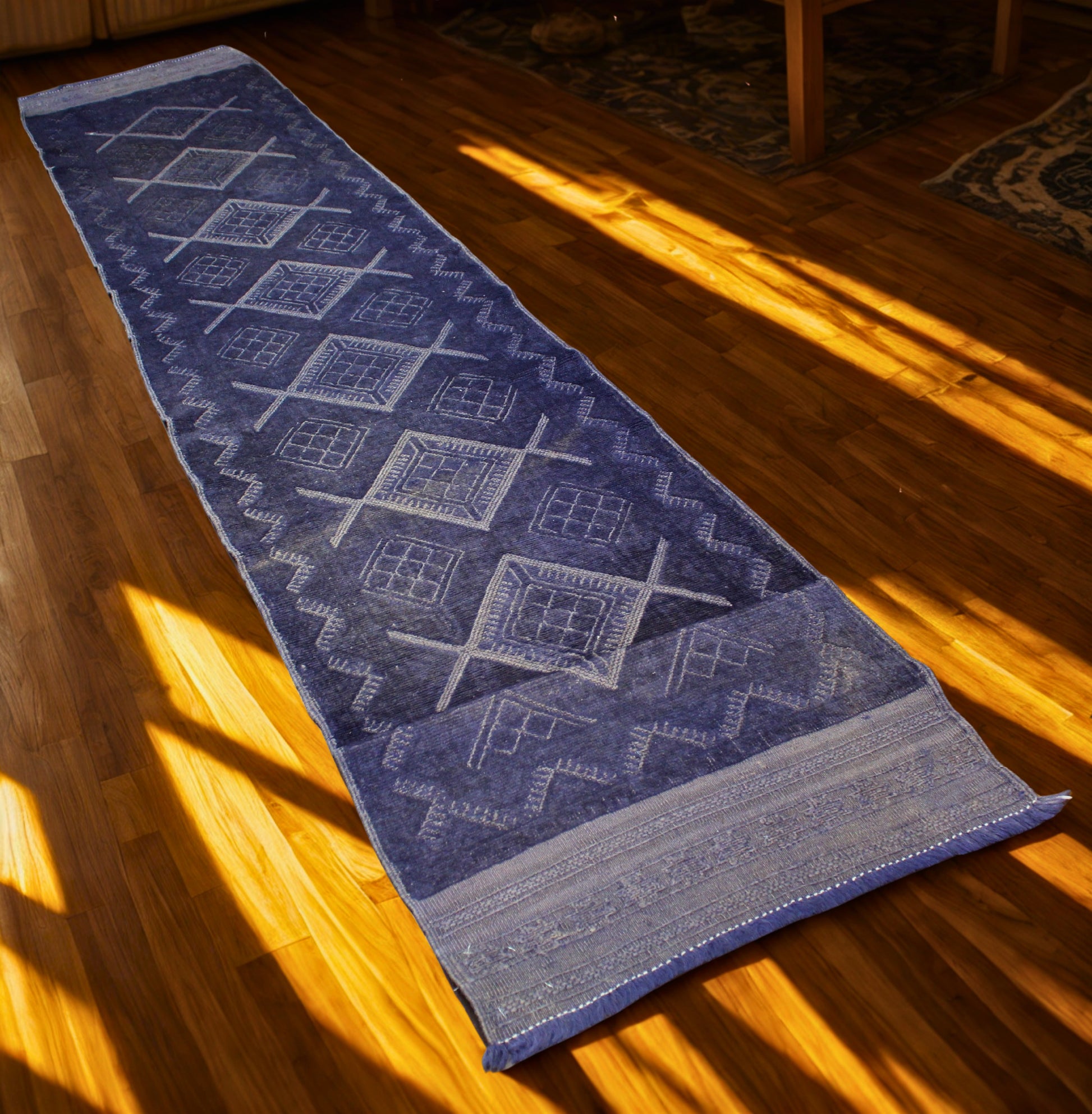 Midnight Geometry – Afghan Shaal Kilim Runner in Deep Indigo (2.3 x 10.10 ft)