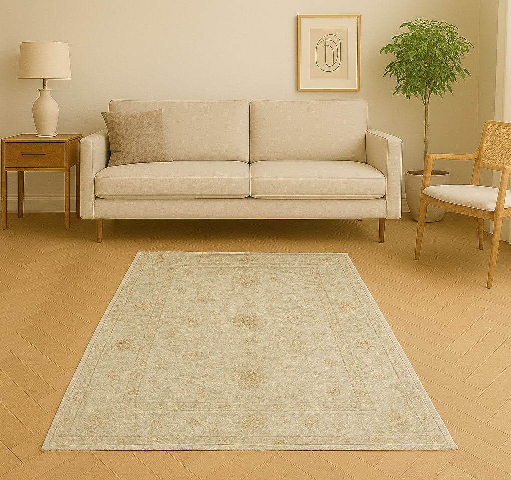 Subtle Refinement – Oushak Rug from Pakistan in Earthy Neutrals (3.10x6.2 ft)