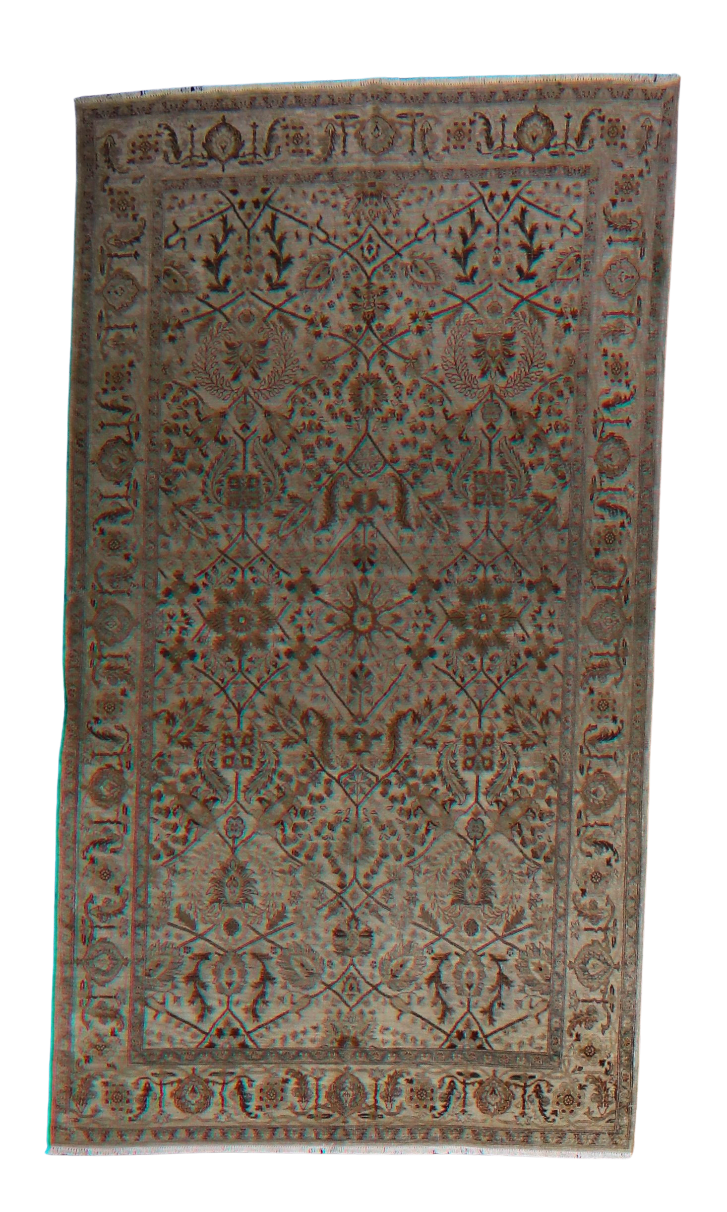 Design: Repeating floral and vine lattice with a detailed floral border