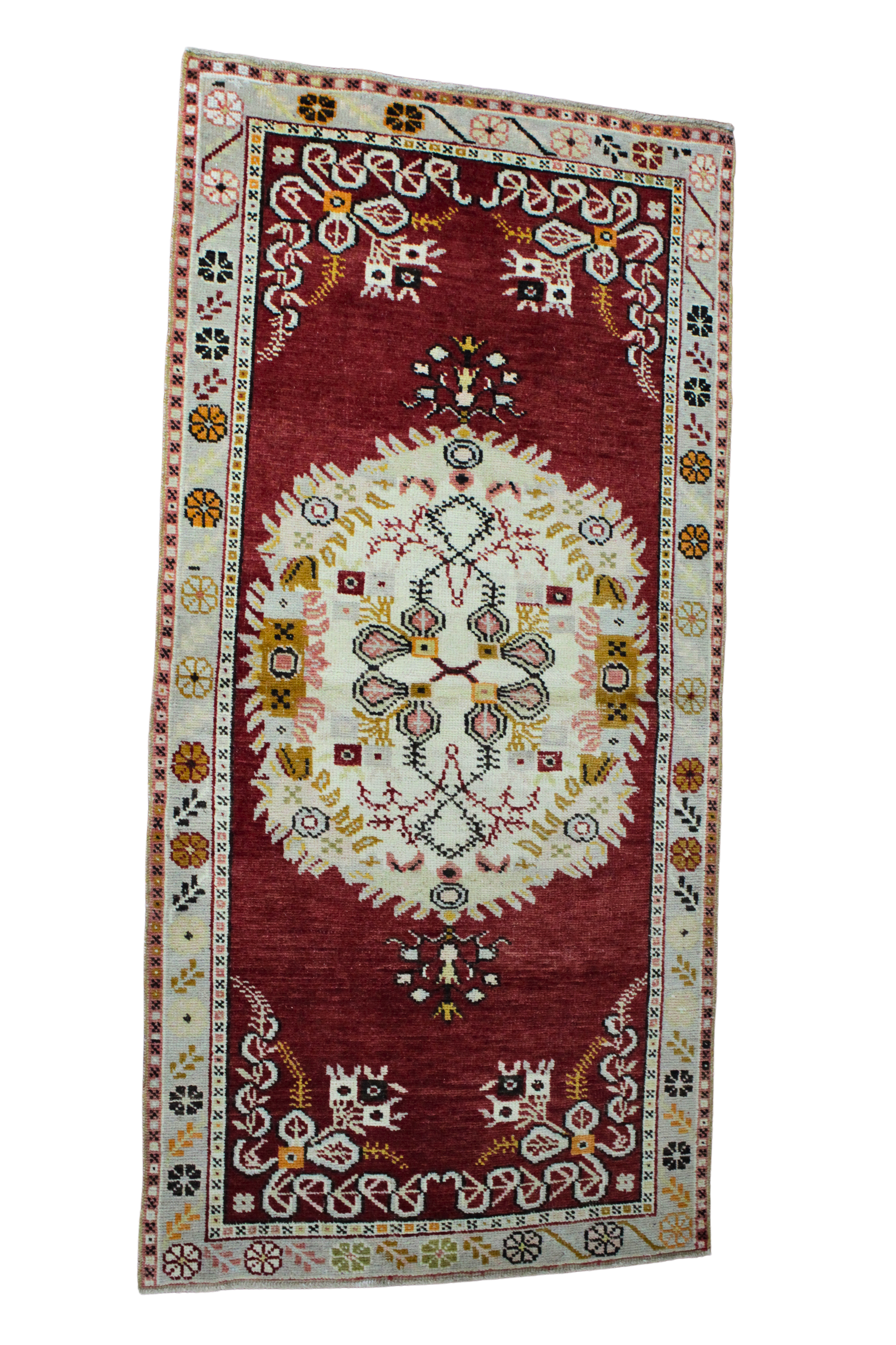 Vivid and whimsical, this Turkish Oushak rug (stock number 2557) is a joyful celebration of color, symmetry, and hand-drawn charm. At 3 x 5.1 ft, its versatile proportions make it an ideal accent for foyers, kitchen entrances, or under a bench in the hallway — anywhere that deserves a pop of character and craftsmanship.