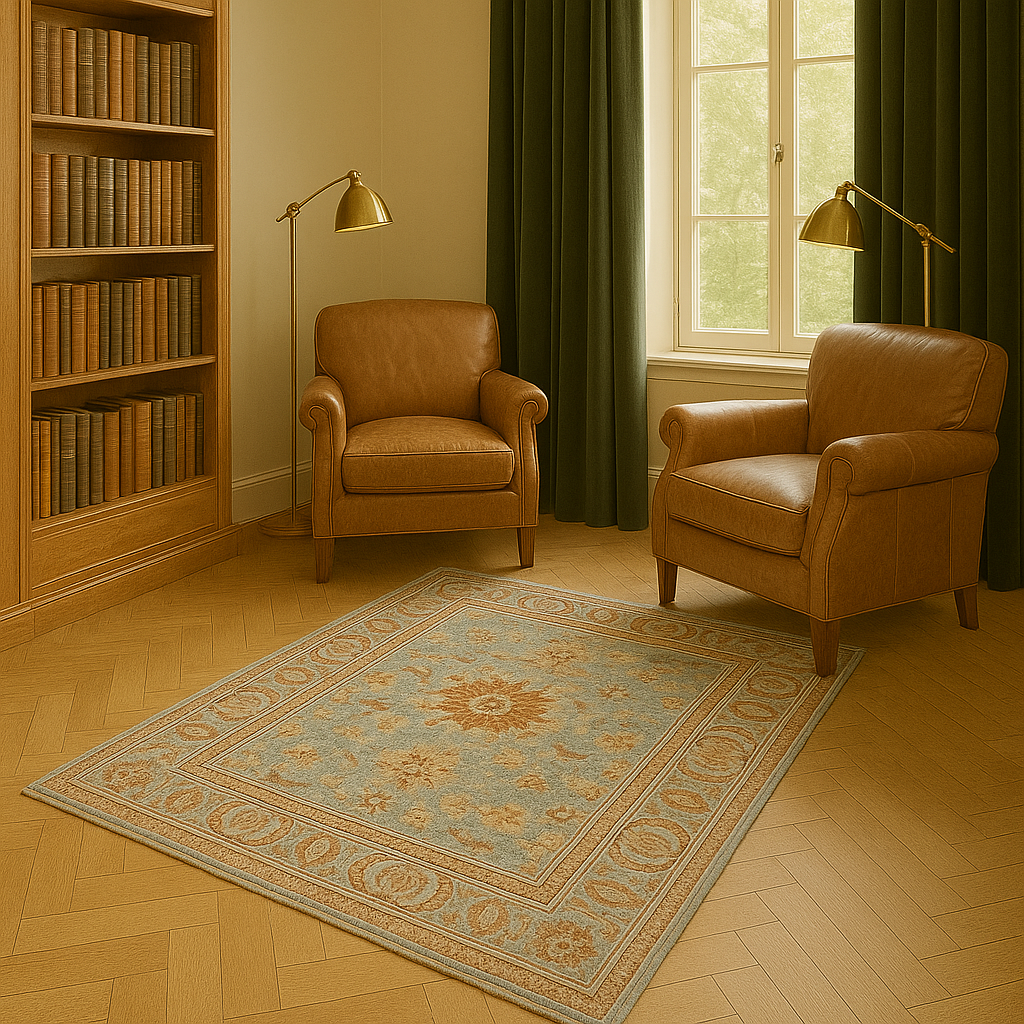 Ideal for a formal dining nook, study, or sunlit sitting room, this rug is both a bold centerpiece and a refined accent.
