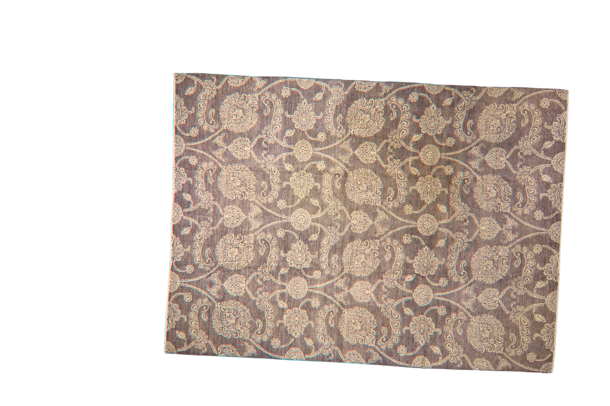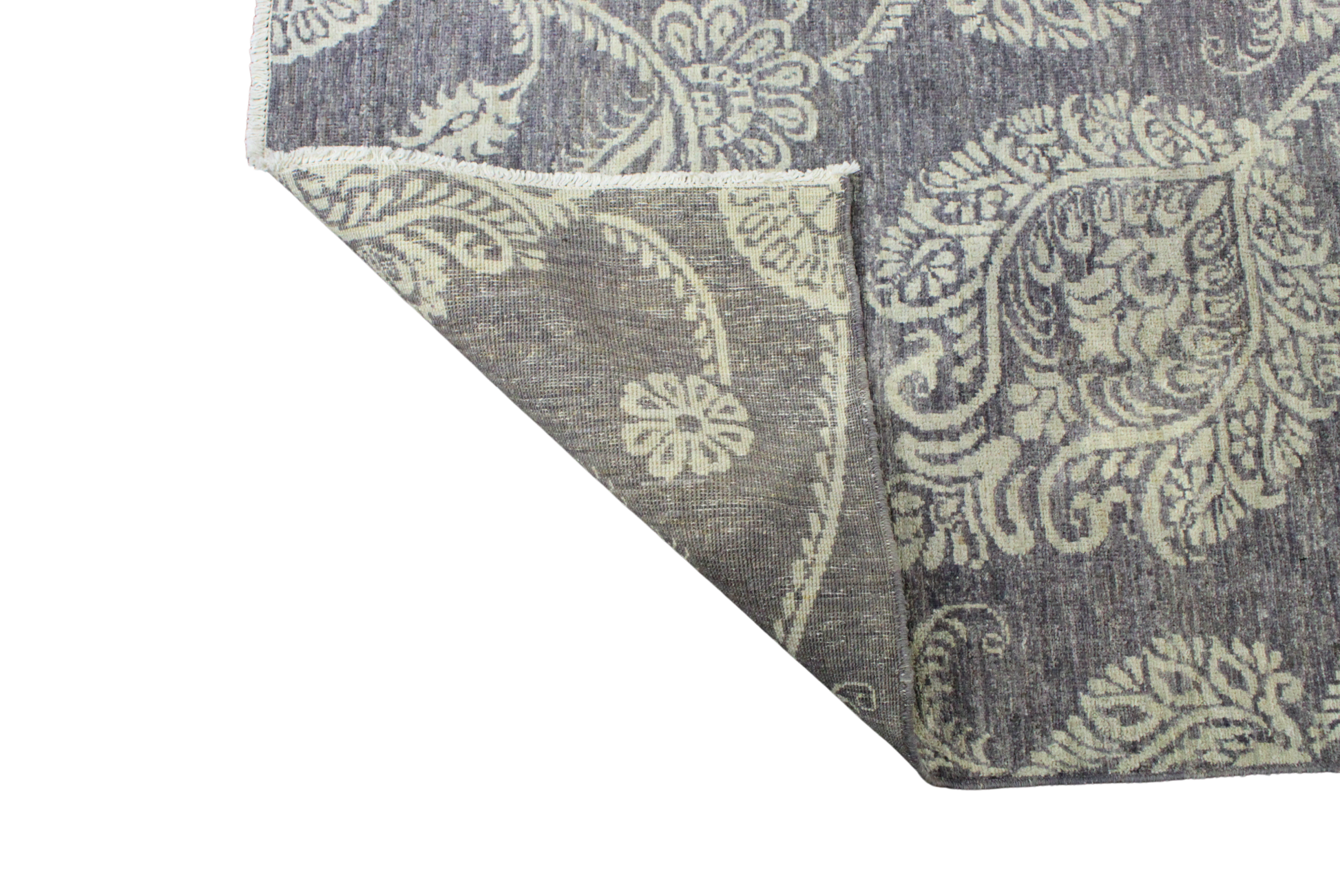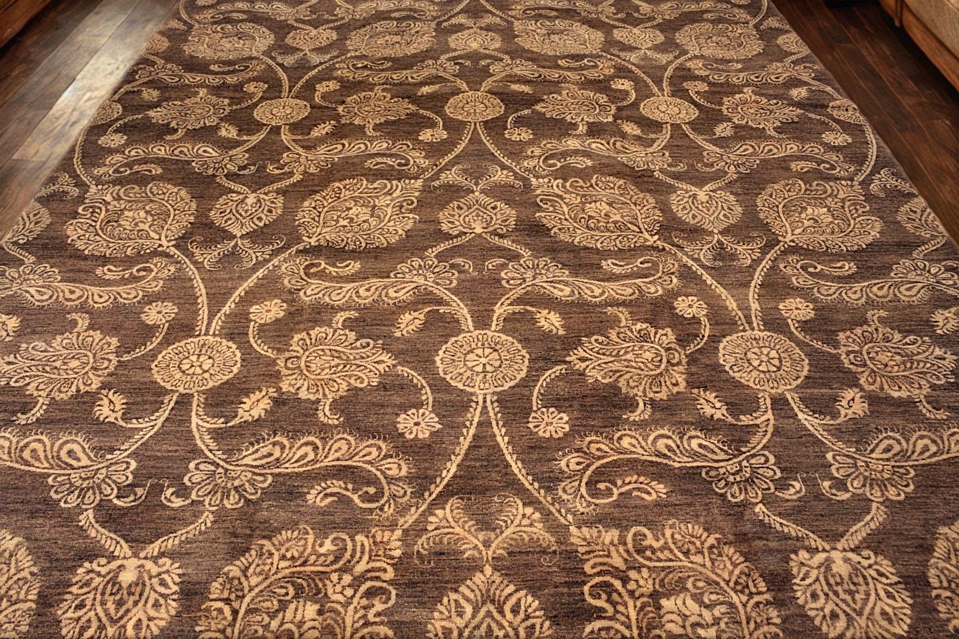 Sleek and sophisticated, this Afghan Oushak rug (9.10 × 13.5 ft) brings a modern twist to classic motifs. Its richly textured charcoal field is gracefully adorned with an allover scrolling botanical design in soft ivory, creating a striking balance of contrast and fluidity. The absence of a traditional border enhances the contemporary feel, letting the vinework and palmettes extend beautifully across the space.