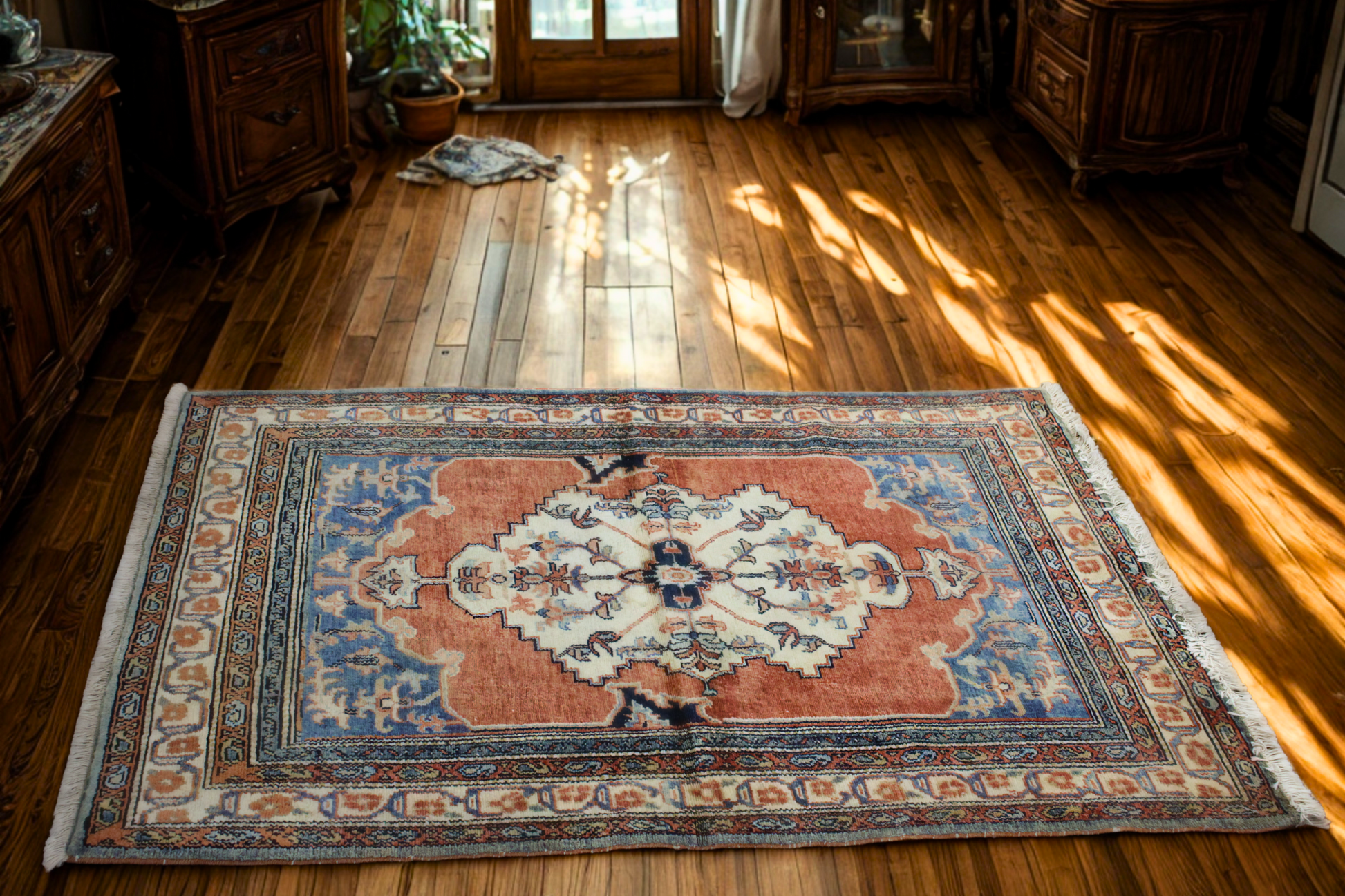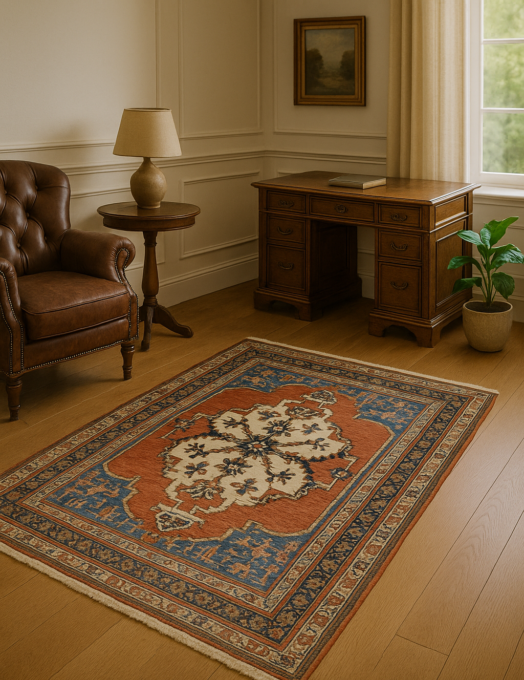 Persian Majesty — Hand-Knotted Mahal Rug in Rust, Ivory & Cobalt
