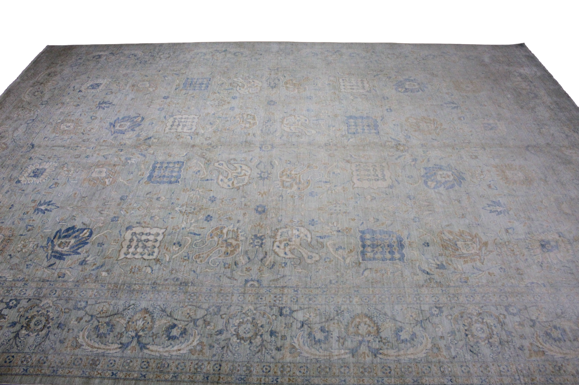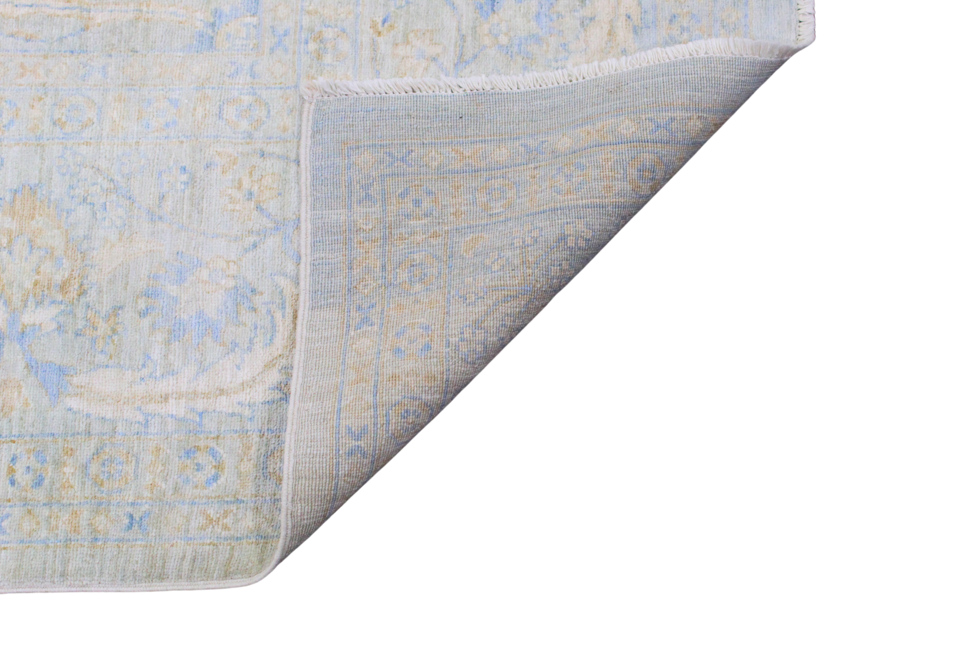 Delicate yet richly detailed, this Ariana Fine Afghan rug (8.10 × 12 ft) exudes a quiet, timeless elegance. A misty ivory-blue field provides the foundation for a medley of refined floral motifs and subtle medallion forms, all rendered in an ethereal palette of powder blue, soft beige, cloud gray, and parchment ivory.