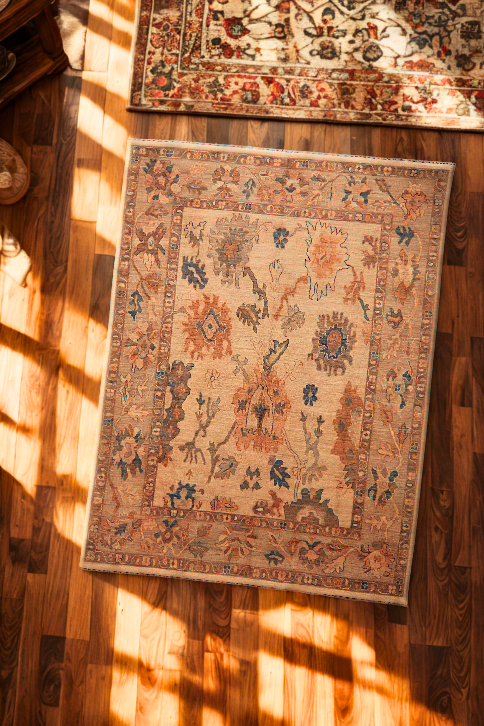 The rug’s relaxed geometry and soft abrash add character without overwhelming the eye, making it a versatile foundation piece for airy living rooms, quiet libraries, or serene bedrooms. Its scale and palette offer the perfect balance of presence and calm.