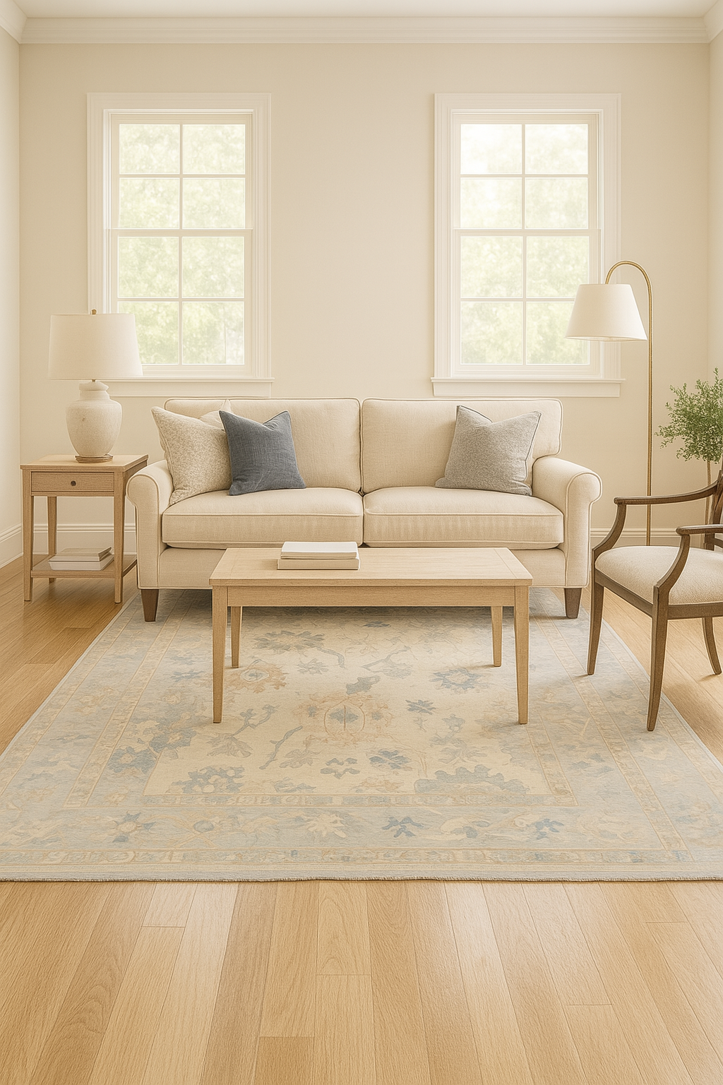 Cool Serenity — Oushak Rug with Misty Blue and Taupe Tones (9.1 × 12.1 ft)
