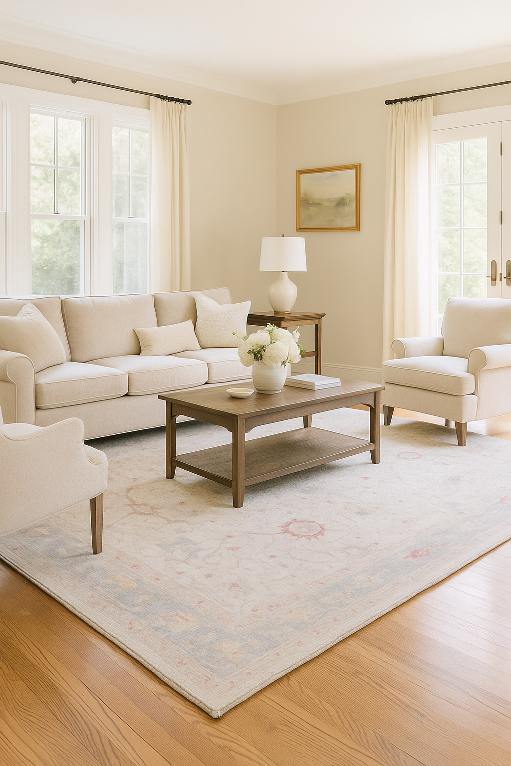 This rug’s artful fading and restrained palette make it a timeless choice for airy transitional spaces, vintage-inspired rooms, or homes that celebrate patina and texture.
