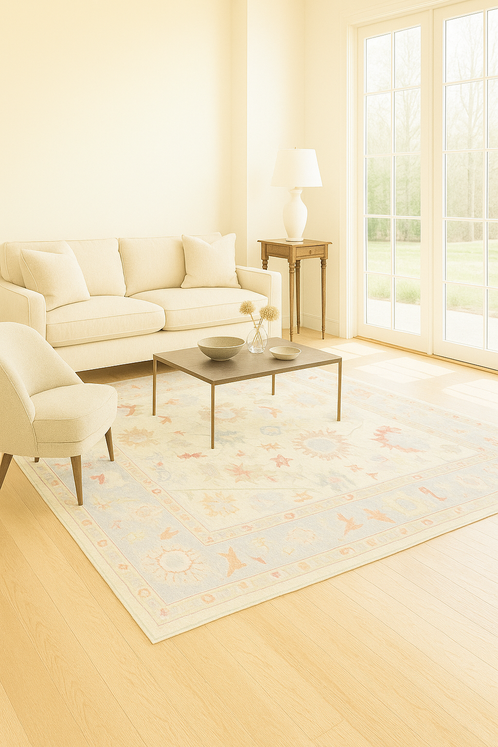 Cheerful Bloom — Oushak Rug in Spring Pastels (8.10 × 11.10 ft)