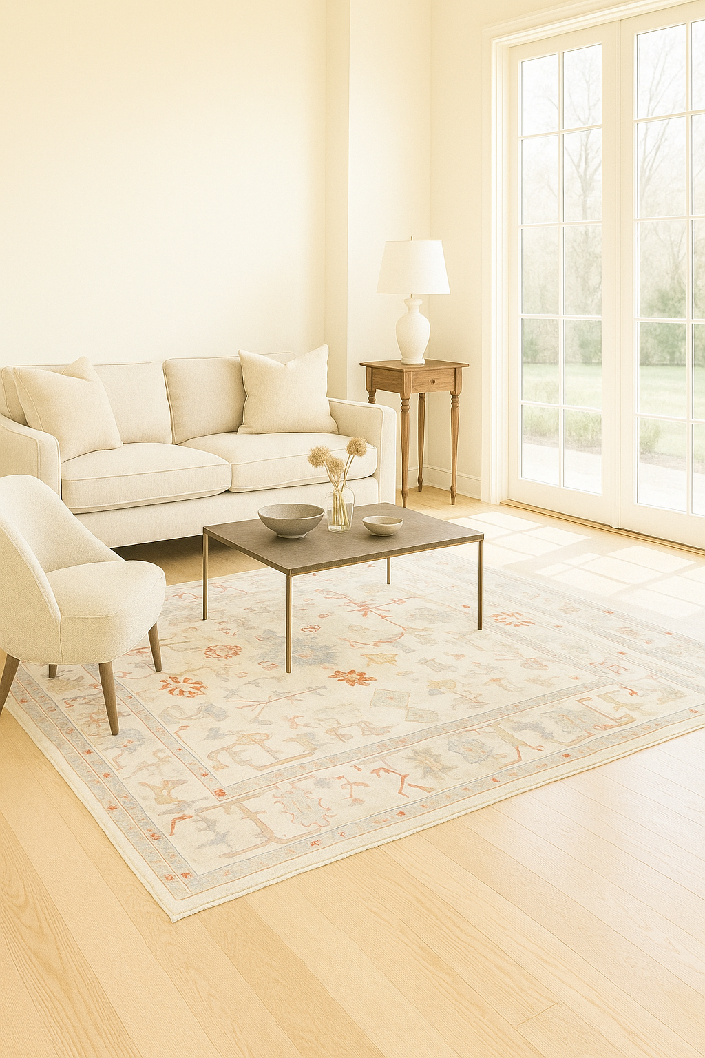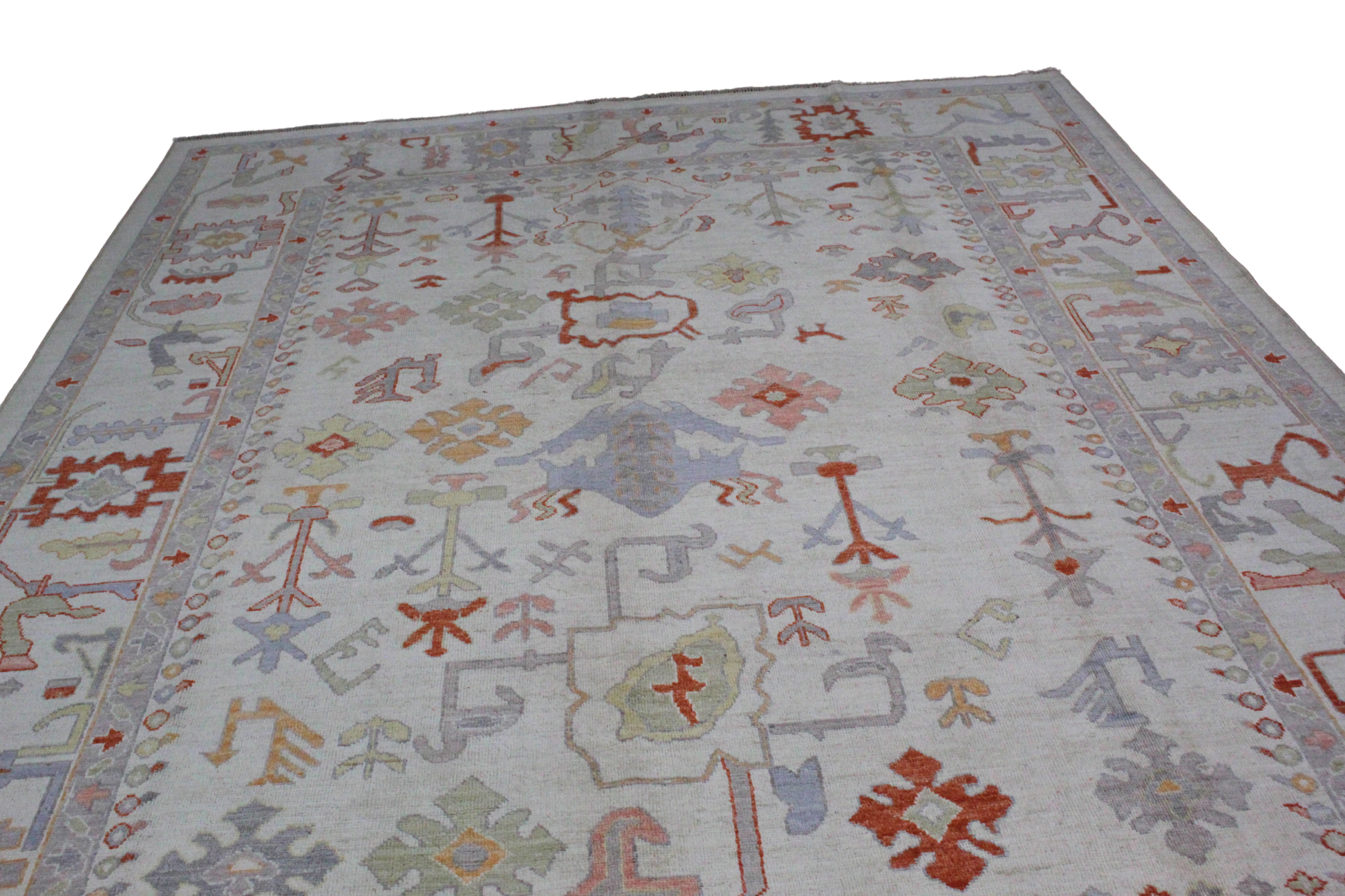 Playful Geometry — Oushak Rug with Tribal Motifs in Fresh Neutrals (9 × 12 ft)