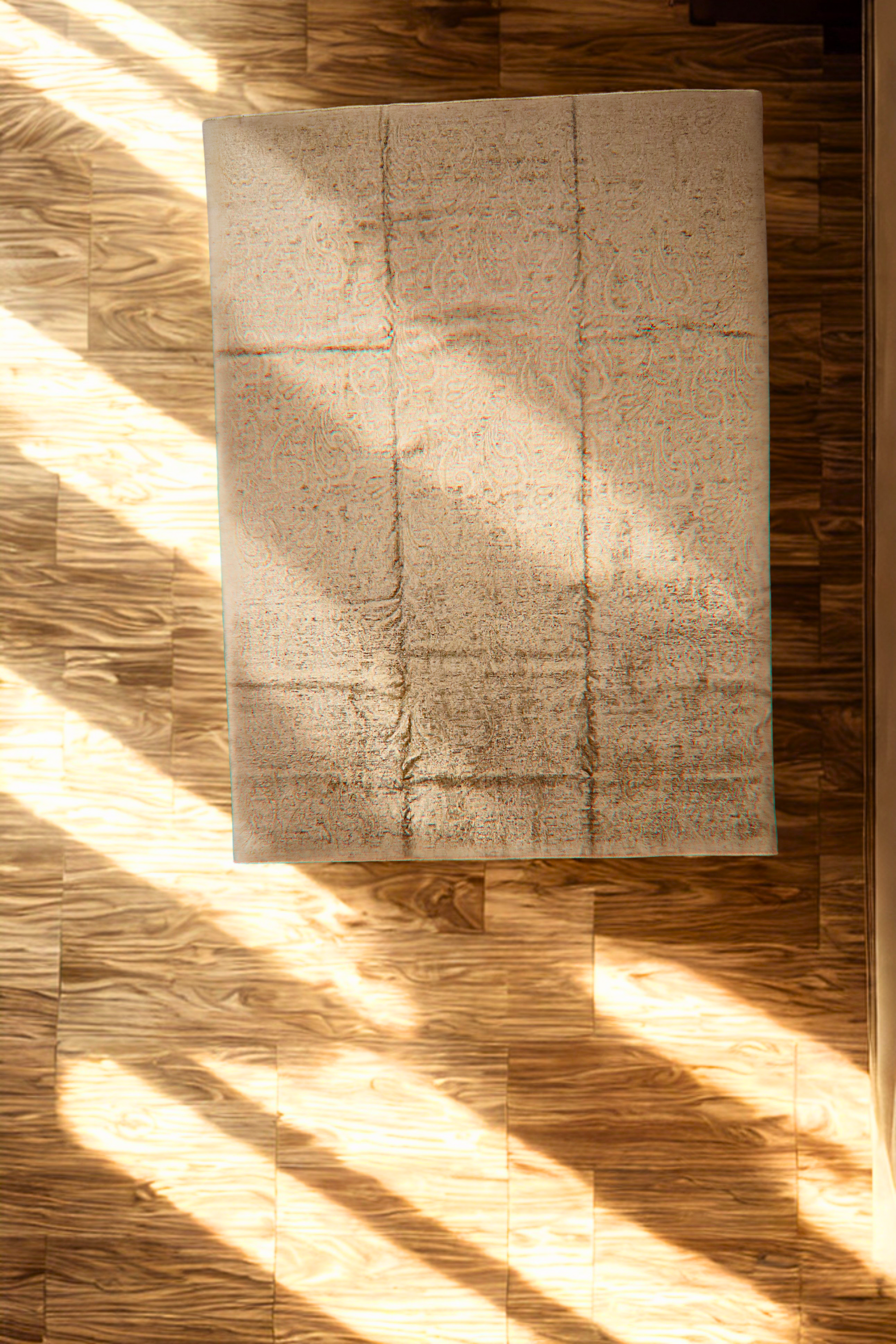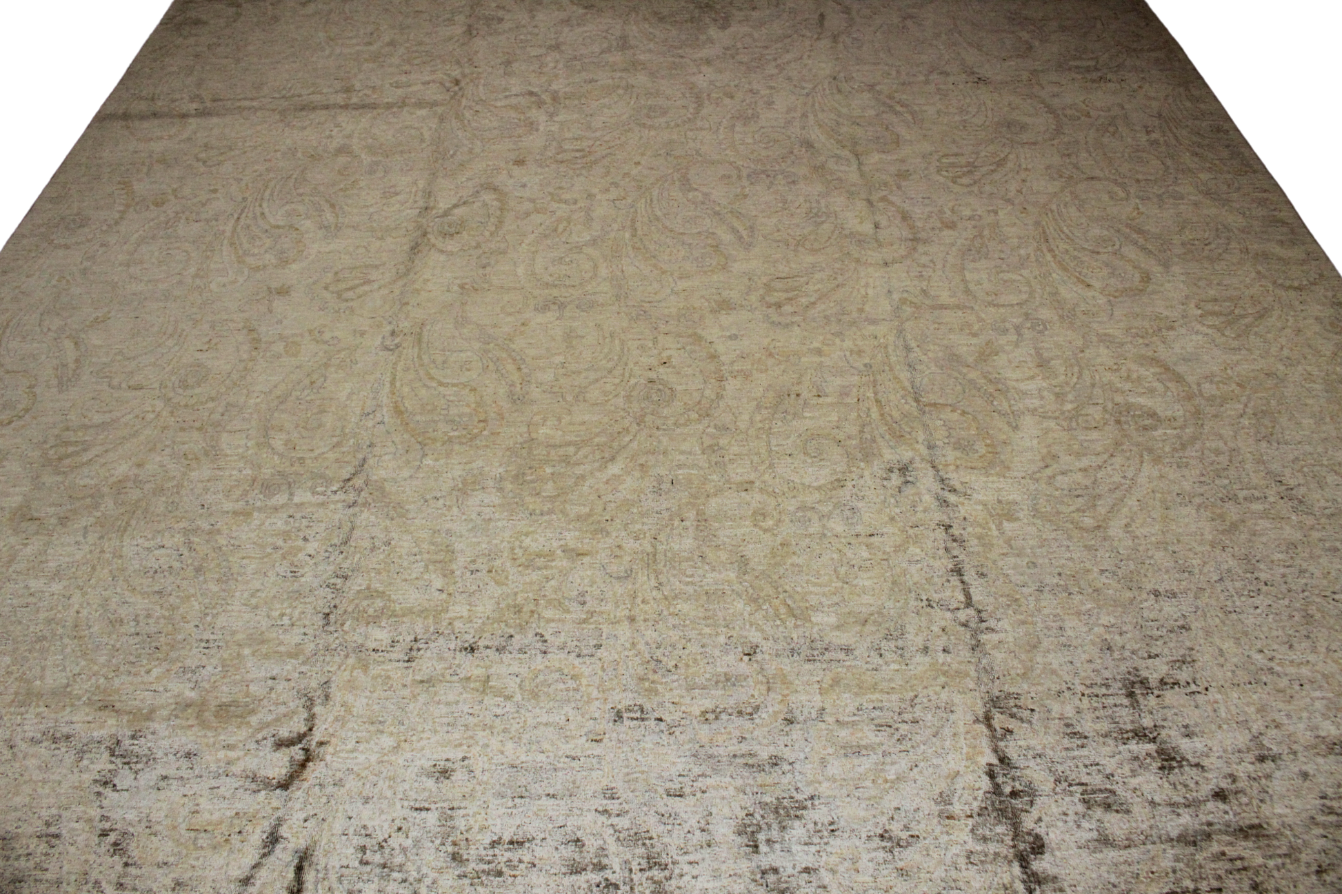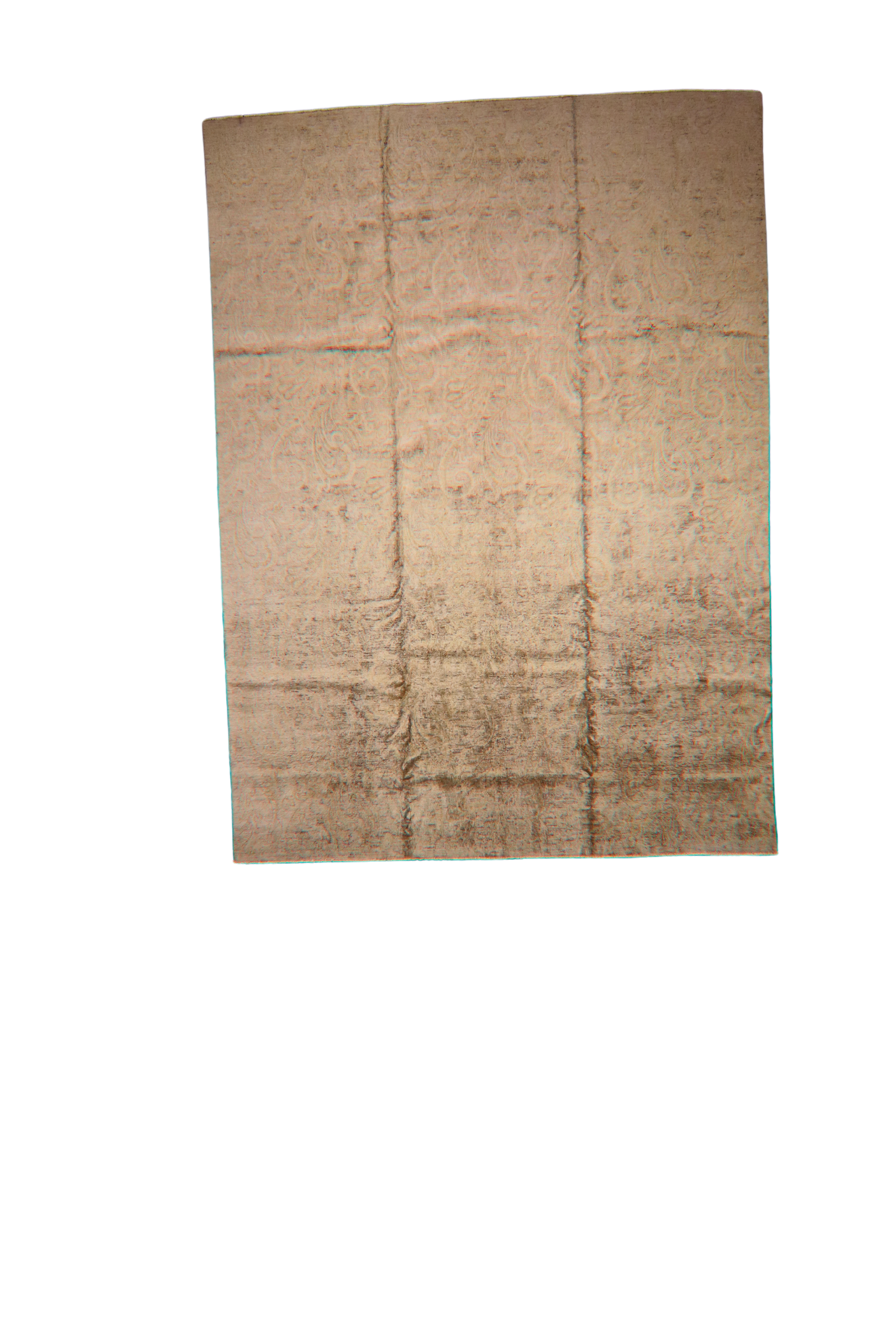 Design: Faint paisley scroll with ombré fade and distressed finish