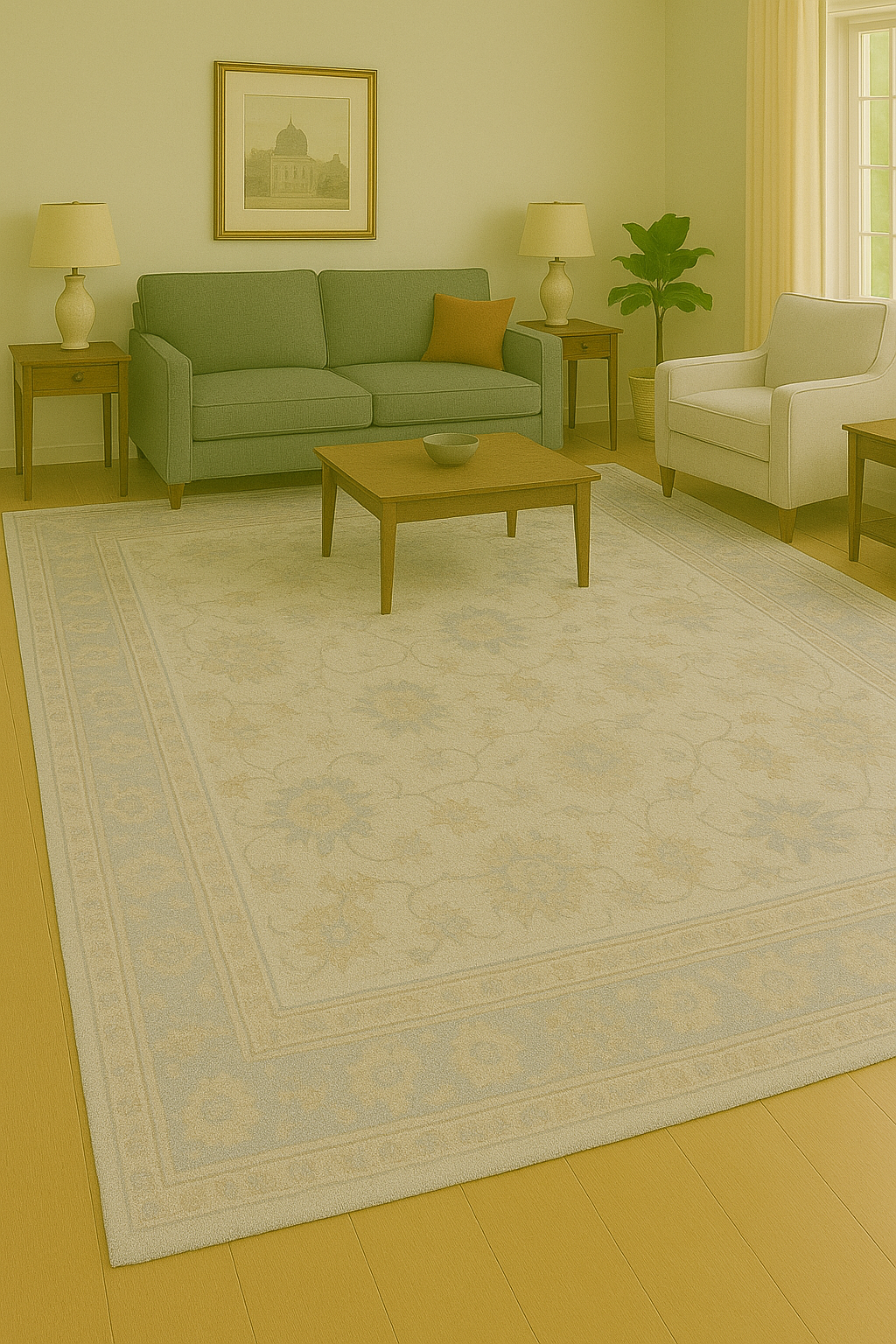 This rug is ideal for grounding a formal dining room, serene bedroom, or polished home library. It invites calm and sophistication into the space, whether paired with antiques or sleek modern décor.