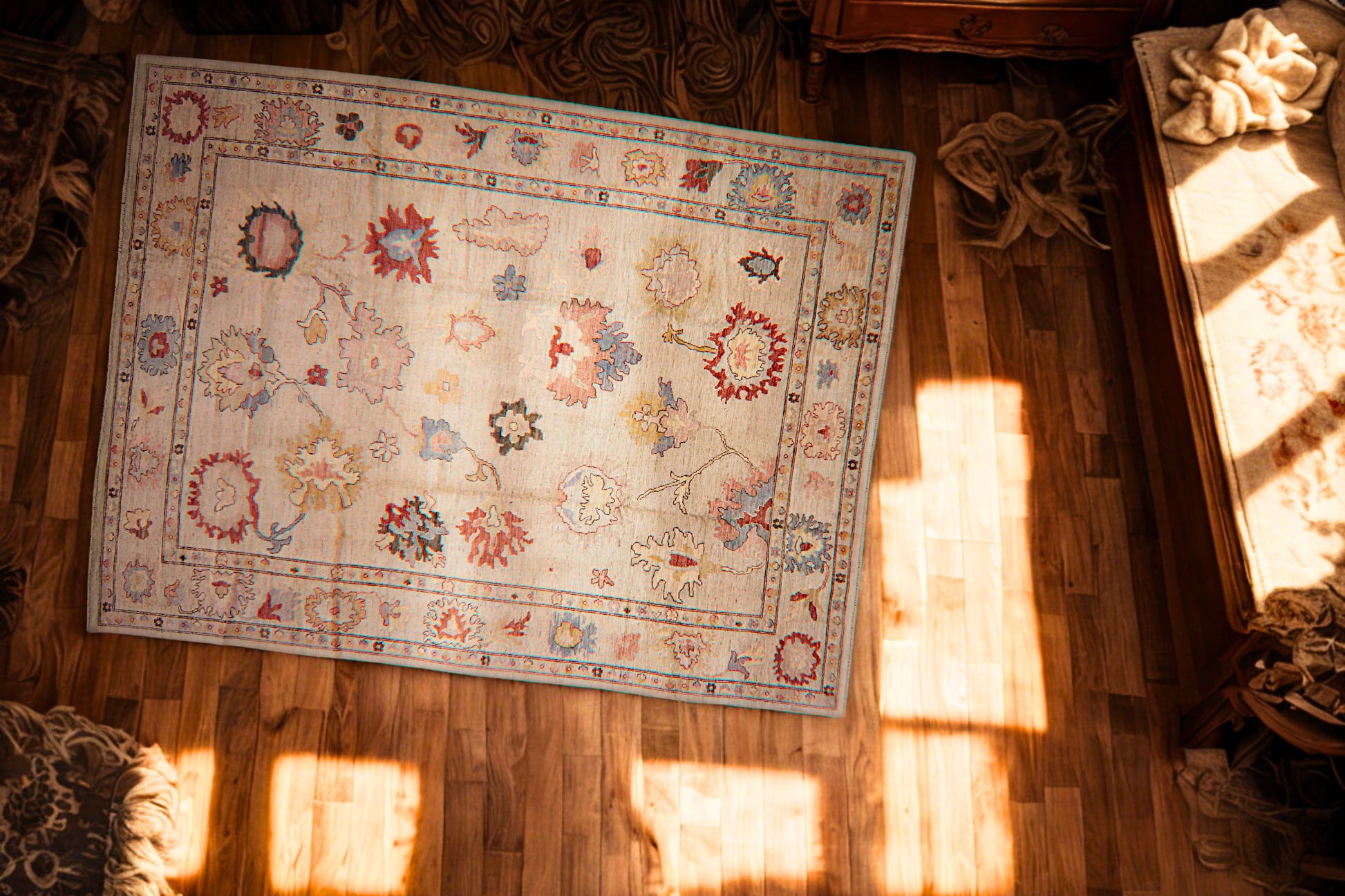 Timeless Softness — Oversized Oushak Rug in Faded Pastels