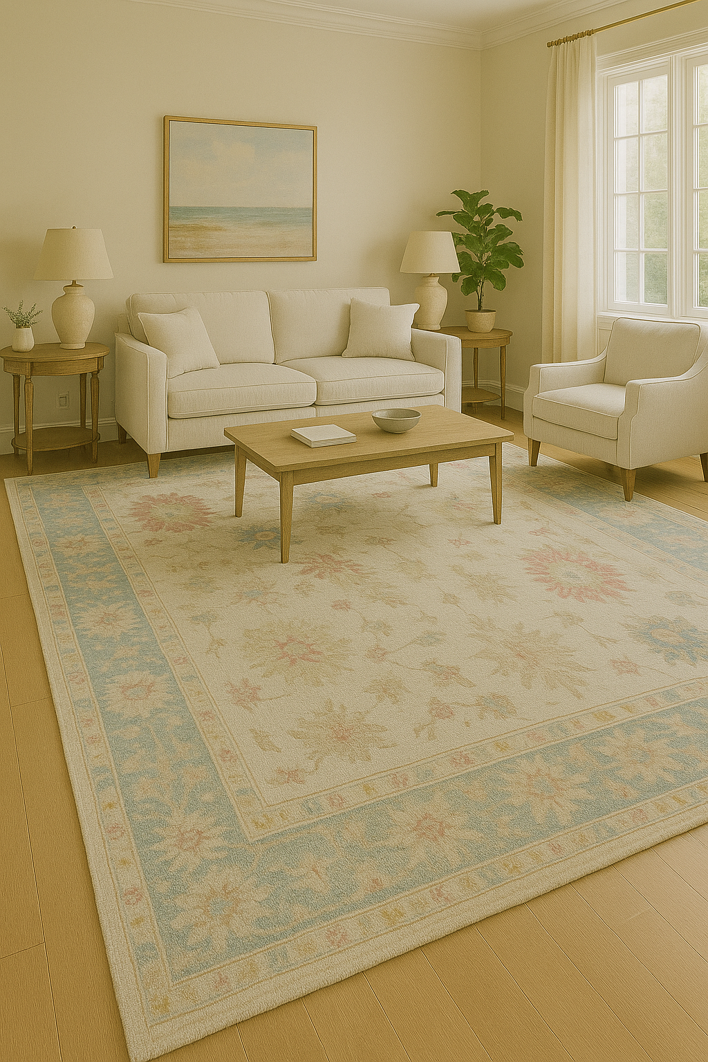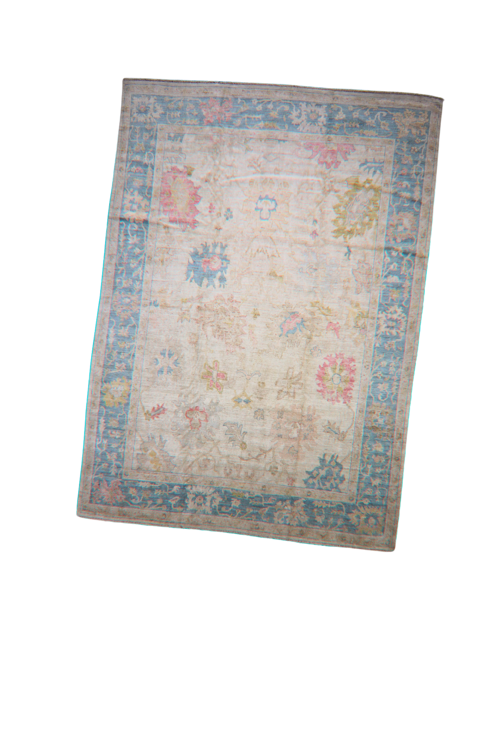 Whispers of Color – Afghan Oushak Rug in Soft Cream, Aqua & Blush (9.11x13.8 ft)