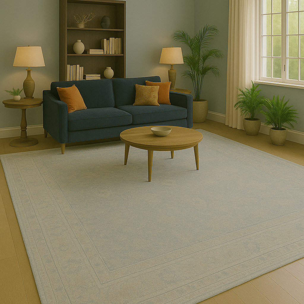 Whether placed in a formal living area, under a dining table, or in a master bedroom, this rug provides a serene foundation with enduring appeal — perfect for spaces that blend understated luxury with classic refinement.